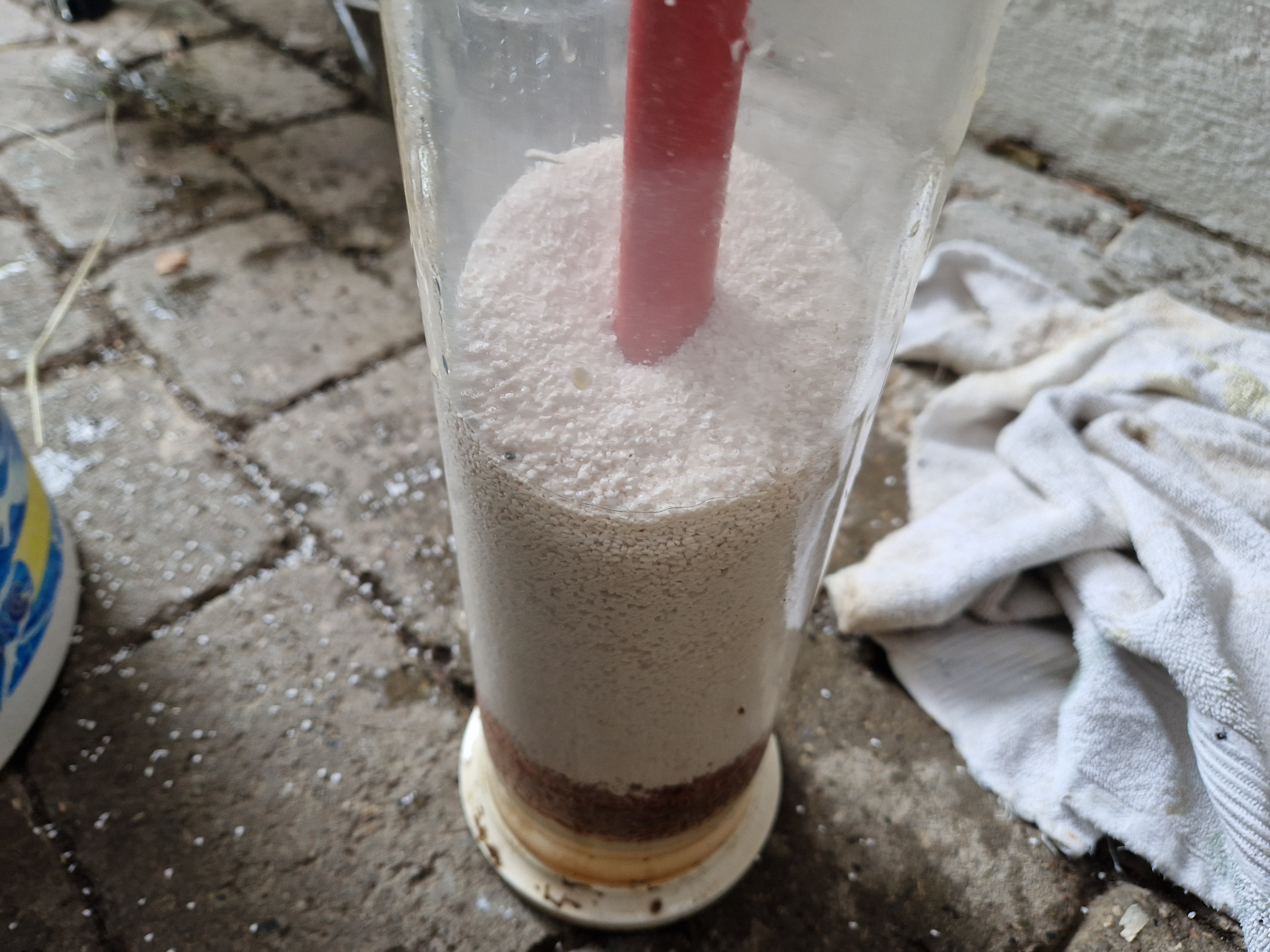 Det er helt anderledes. Små tunge perler. Nu er der kommet 1 kg i reaktoren.