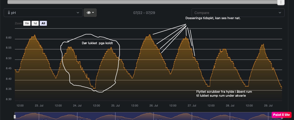 Når jeg er i tvivl så dobbelt tjekker jeg... og trible tjekker... og.... Det jeg mener er: Er du SIKKER på at din probe er kalibret rigtigt? og at den virker rigtigt... Sagt med andre ord: Er du sikker på at din PH er så lav som du skriver? Prøv evt at måle med en billig ph væske fra Salifert ell anden... Hvis ja, PH er faktisk nede mellem 7,6 - 7,9 så skal der jo ledes andre steder :sneaky: Det er fino hvis den ligger mellem 7,9 - 8,2, det er optimalt hvis den ligger mellem 8,1 - 8,3, det er sjovt og øger vækst hos især sps hvis den ligger mellem 8,3 - 8,6