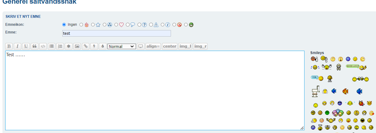 Skriv din overskrift (Emne) og lav opslaget i tekstboksen. Du kan bruge smileys til venstre for tekstboksen, men smileys fra din mobil kan også bruges.