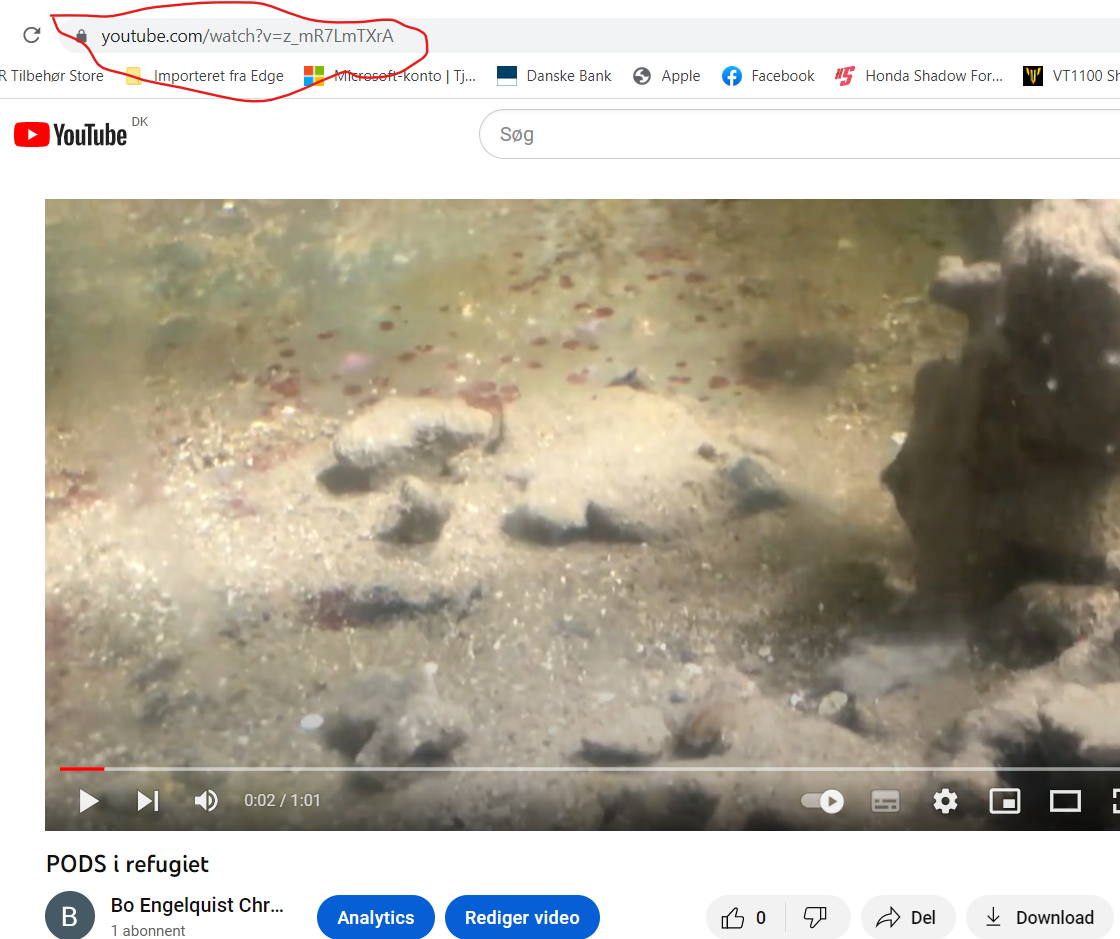 Afspil videoen på YouTube og kopier linket