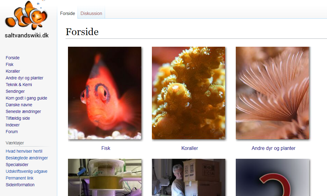Linket til saltvandswiki findes øverst på siden: Derinde kan man gå på opdagelse og finde en masse god information: Saltvandswikien er ved at blive opdateret med ny viden, af Anders Månsson, Petersoe, Heiwald og Alex_ben. Så hvis I har forslag til en opdateret tekst, nye billeder eller beskrivelse af f.eks. en koral, så send Anders Månsson en pb