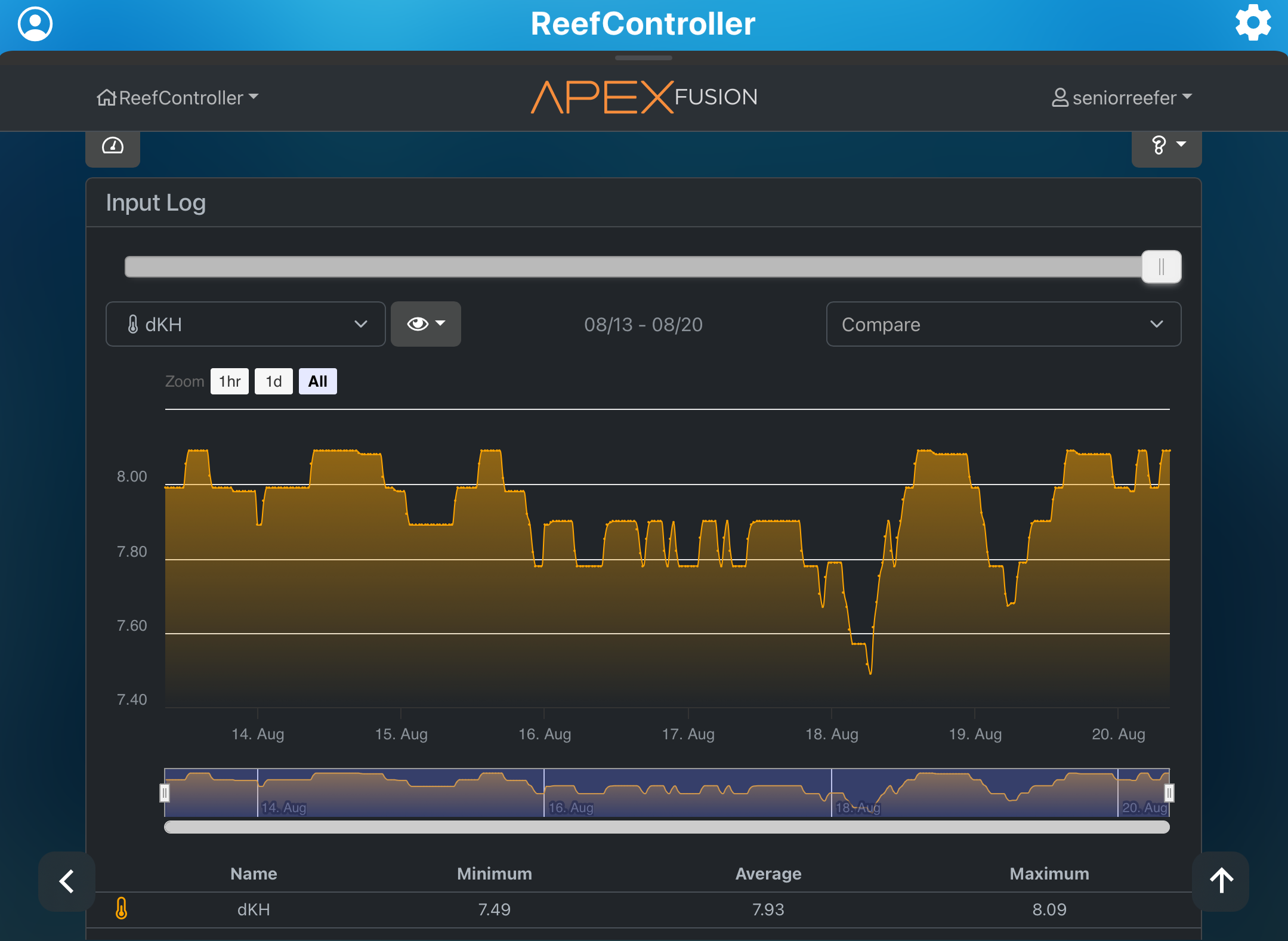 Mit system kører pt på det maximal af hvad mit udstyr kan klare. Jeg har haft store problemer med at holde min KH oppe, selvom min Dastaco kalk reaktor kører på 100% , samt kalkvand fra min hjemmebygget PH stabilisator / Kalkwasser reaktor.