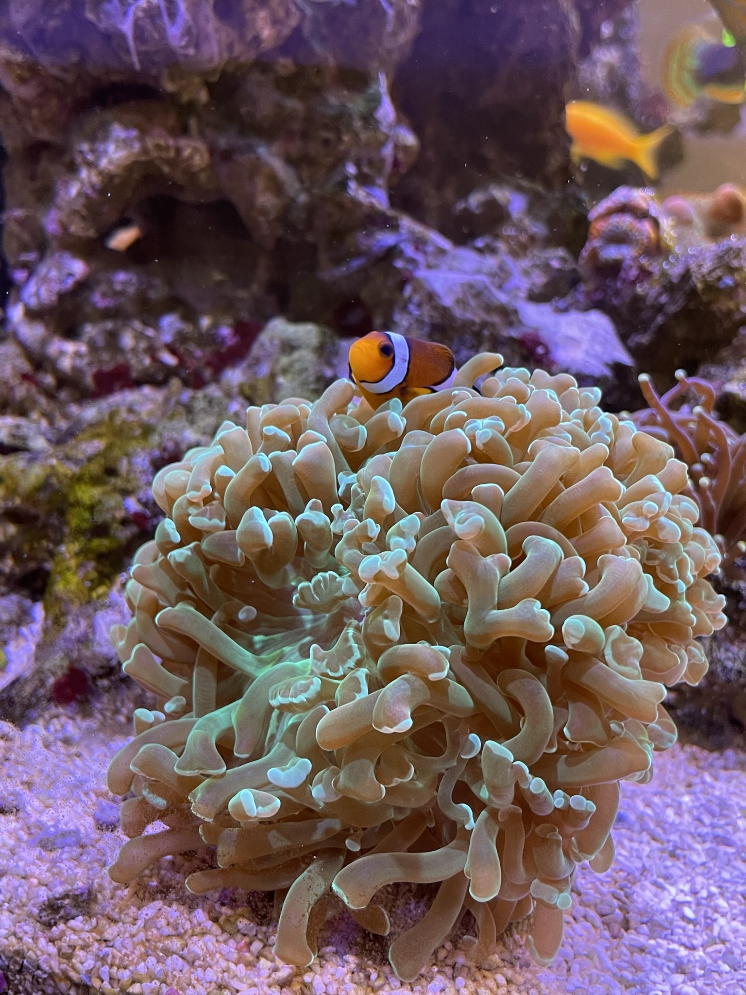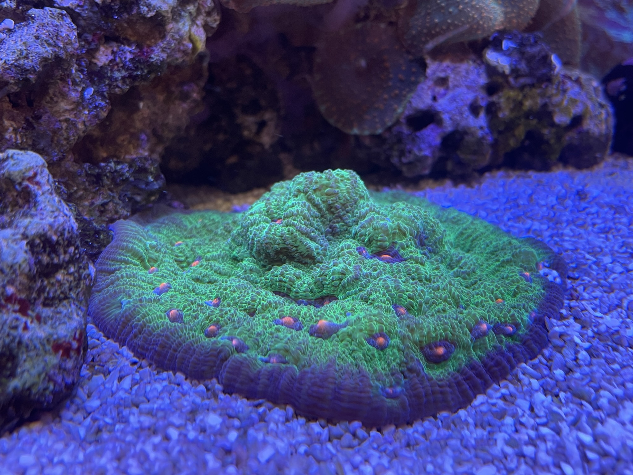 Min har aldrig formået at få farve.. men tror lidt det er fordi mit søpindsvin har en fetish med at hente koraller og smide dem lige midt i den. Som om den er en tallerken der skal fyldes..