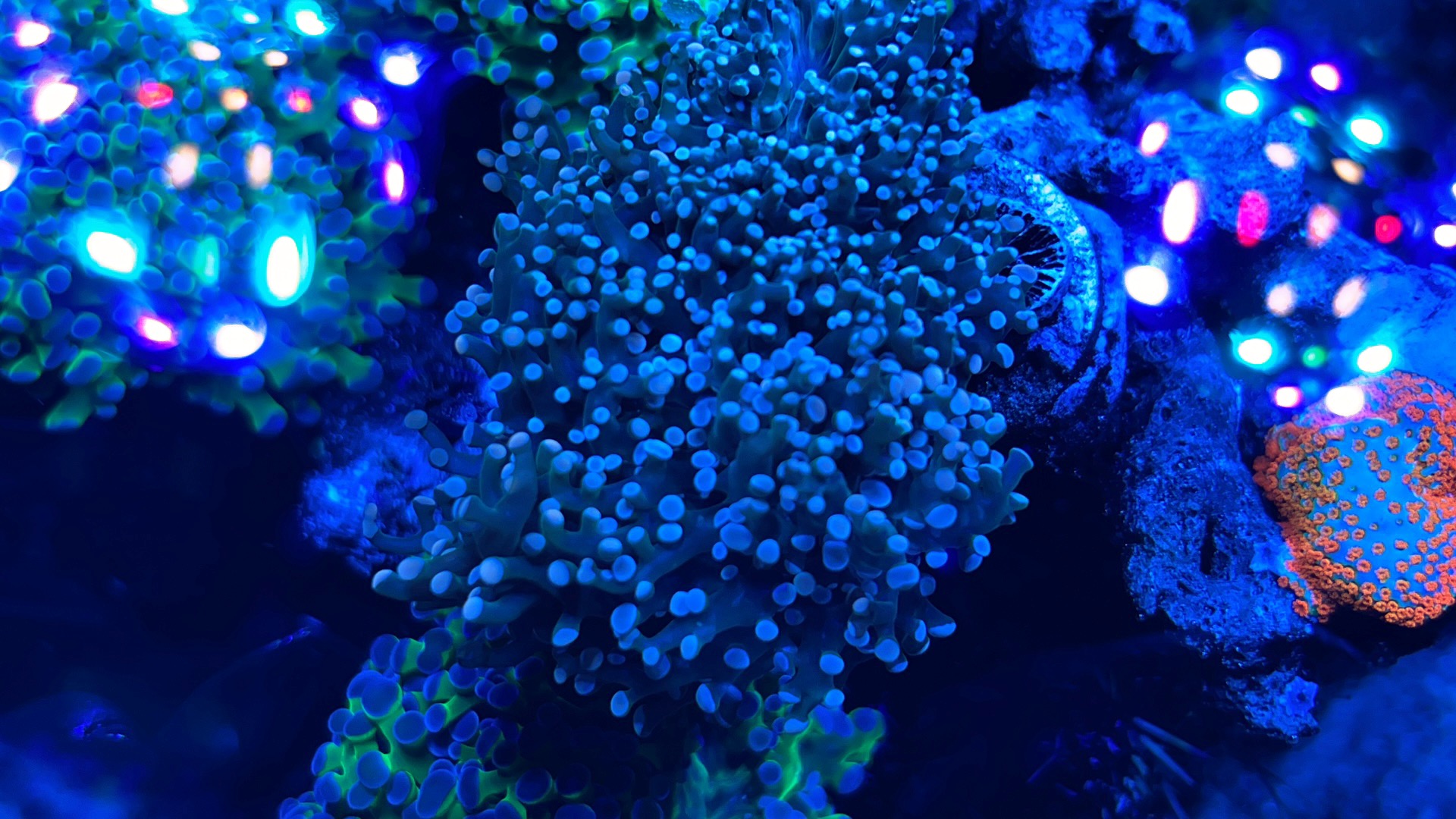 3. Sollys. Jeg kører jo med ret lidt PAR, da det primært er en lps balje ( har pt 2 stk Plating monti HELT oppe under lyset, som det mest lyskrævende (sps)). Så det næring der u-undværligt ophobes i sten, blir alge brændstof, som så gror godt i sollys.