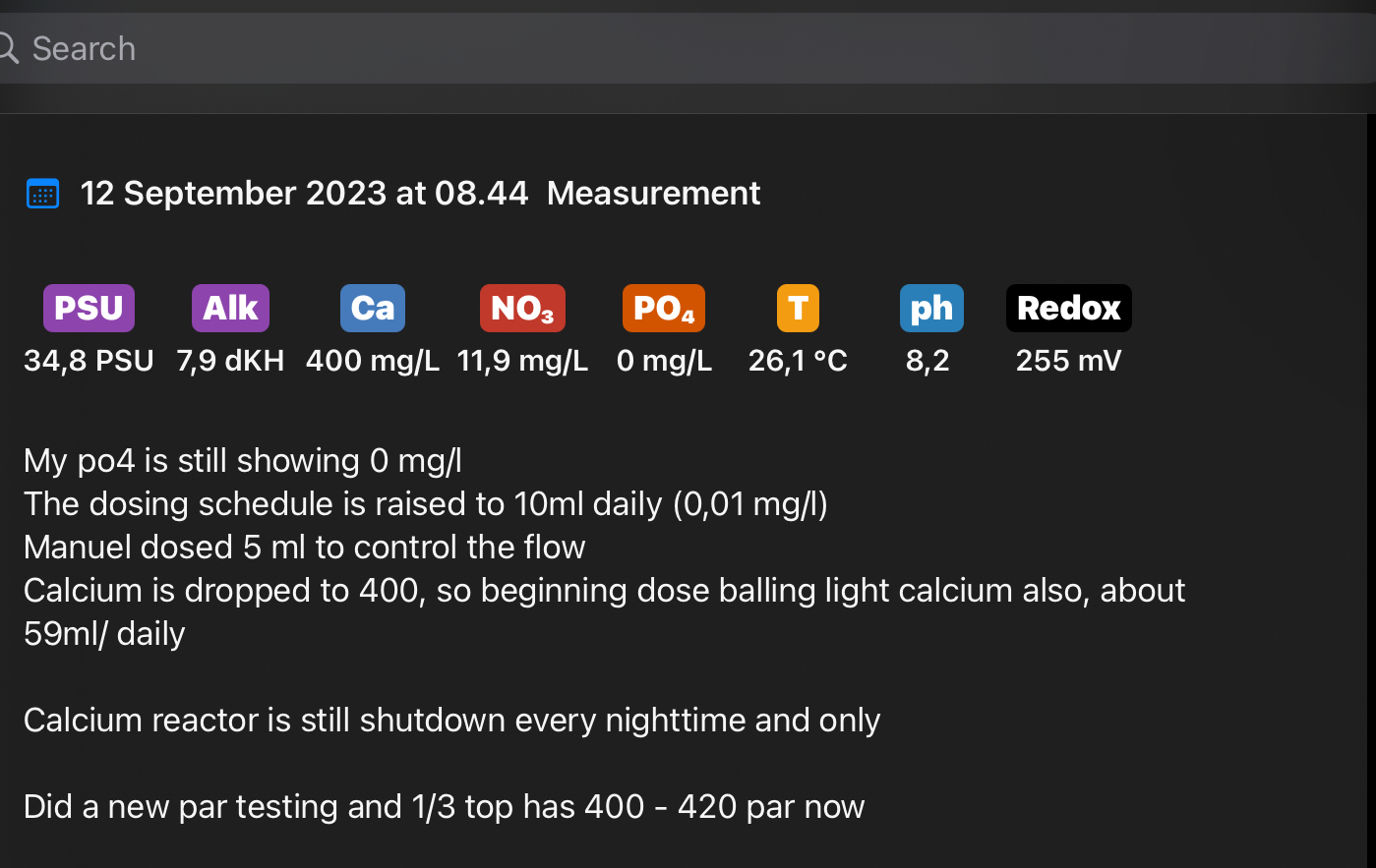 Efter denne icp dosere jeg ikke jern mere og bestemt slet ikke CU - cobber som fauna marin anbefaler. Jeg bruger a- og K+ til at være sikker på der er lidt. Jeg brugte André metode og dosere en enkelt dråbe om dagen, men resulterede i jeg så kobber i den næste icp.