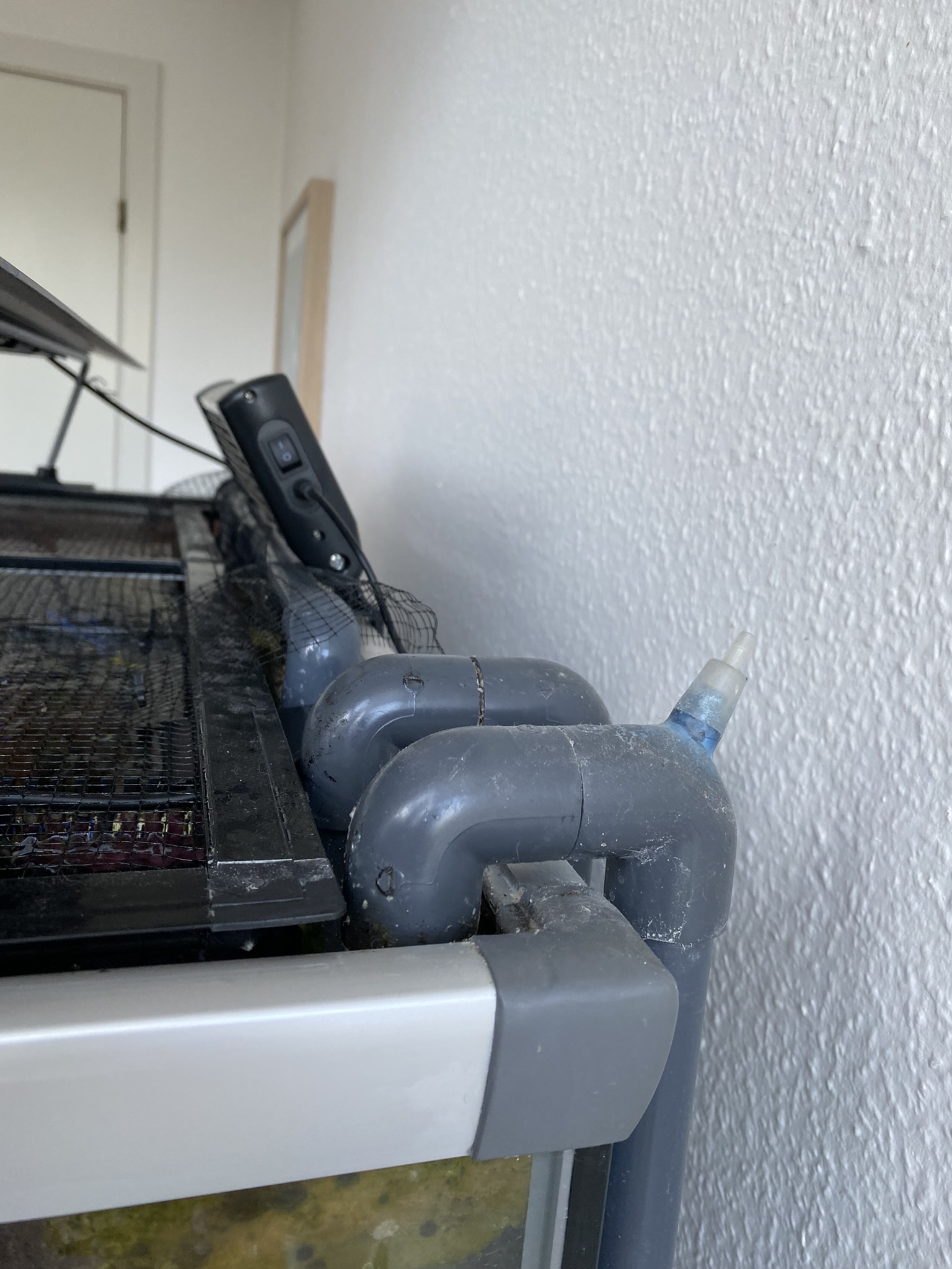 Ville først starte op uden sump, derfor blev der købt en Deltec MCE600 skummer, men den ide blev skrinlagt, så der skulle findes på at lave overløbskammer, samt havde ikke mod på at bore hul i bunden, for at få rørføring til sum. Søgte på nettet, og fandt en video på youtube med DIY Aquarium overflod PVC. Har kørt med det siden 2015, uden problemer.