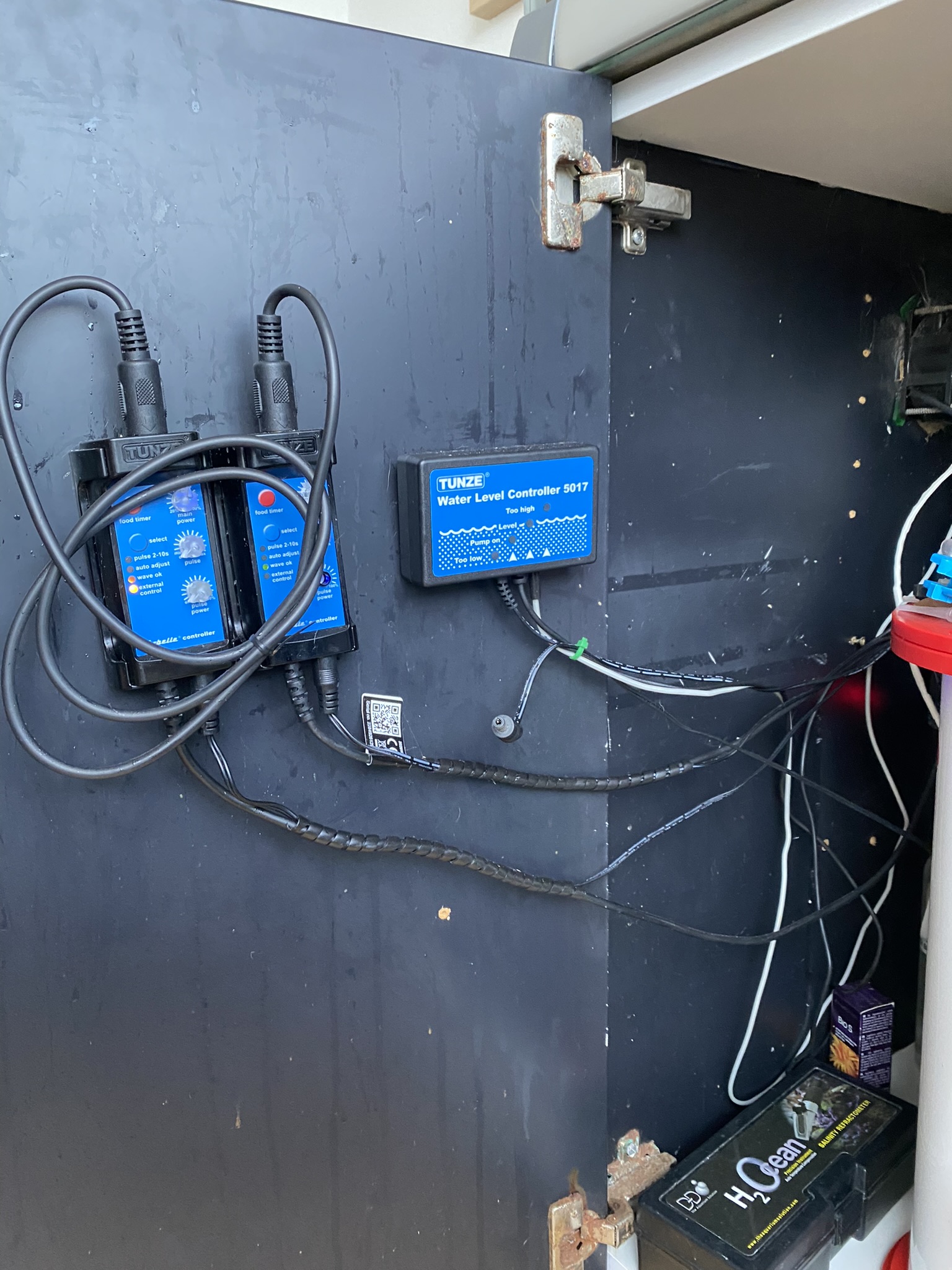 Octo algereaktor LR-150, hvor der bliver høstet chaetomorpha alger ca. 1 gang om måned. Osmolator Tunze 3155, samt har aktiv udluftning af underskabet med en PC blæser som køre fra 23 – 6. Dette har gjort at PH værdien er rimelig stabil.