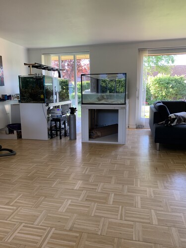 Det "skal bare" skubbes, drejes 90 grader.... :h Pt står det som en rumdeler, min dejlige hustru, aka direktøren for det hele, fik den fremragende ide at vi "bare lige" drejer det ind mod væggen.... Det står på et SOLIDT træstel, (hjemme lavet) Dét er jeg ikke nervøs for. Jeg har tænkt mig at hive fx 50% vand ud i baljer og tømme sumpen, da denne aligevel skal flyttes i underskabet, hvis møblet drejes..... Hvis akvariet er halvt tomt og sumpen er ude, vil jeg tro møbel og akvarie vejer MAX 300 kg... Er det ikke realistisk at gøre uden uheld...?