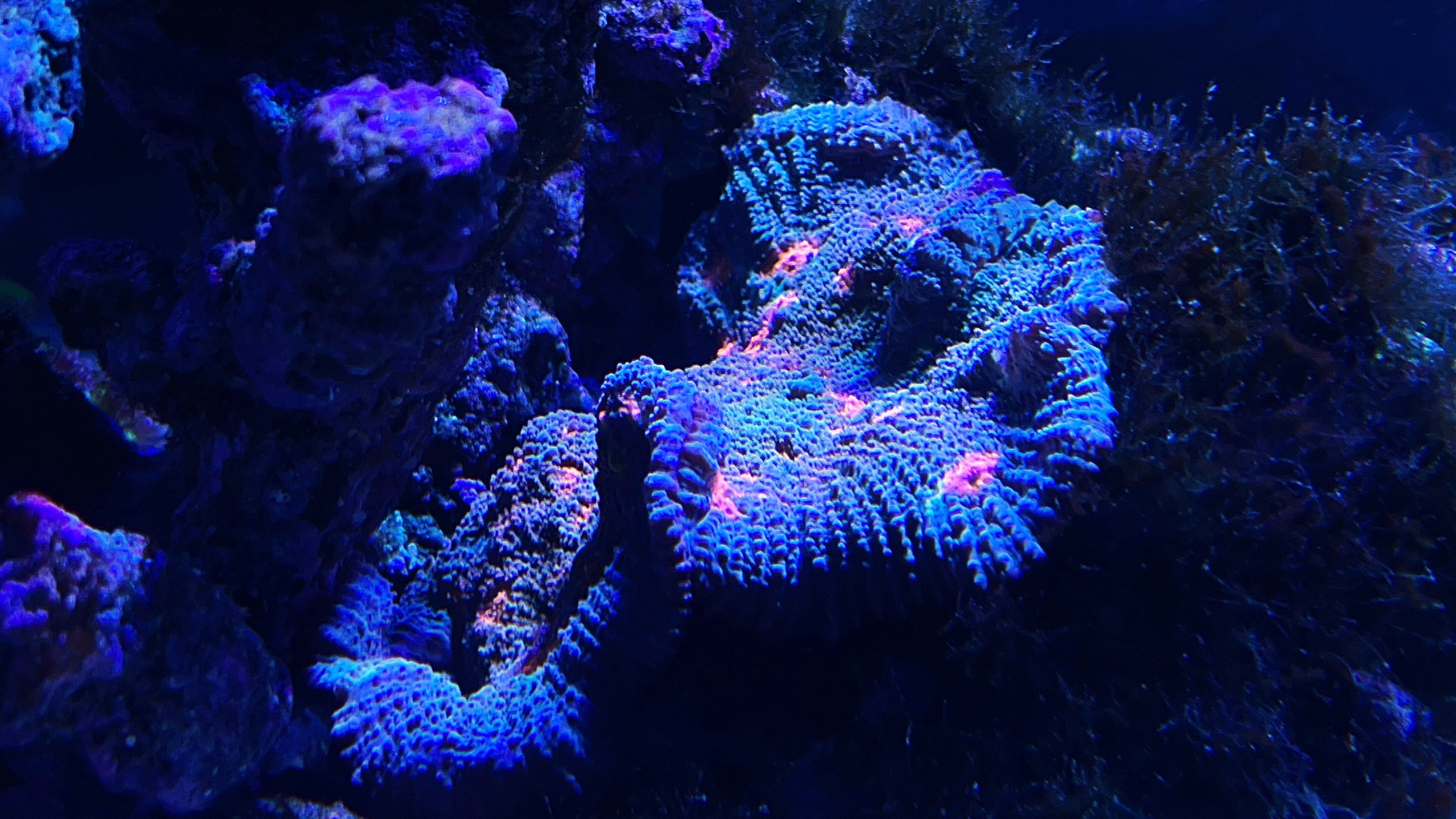 Røgen har lagt sig efter jeg fik fanget “Olivia” ind og afleveret hende ved Dan igen. Så nu begynder homophyllia at blive en smule “fleshy” igen. De reagerer desværre ikke ret meget på foder endnu (det gjorde de BIG time, før sommerferien) Håber det snart kommer igen