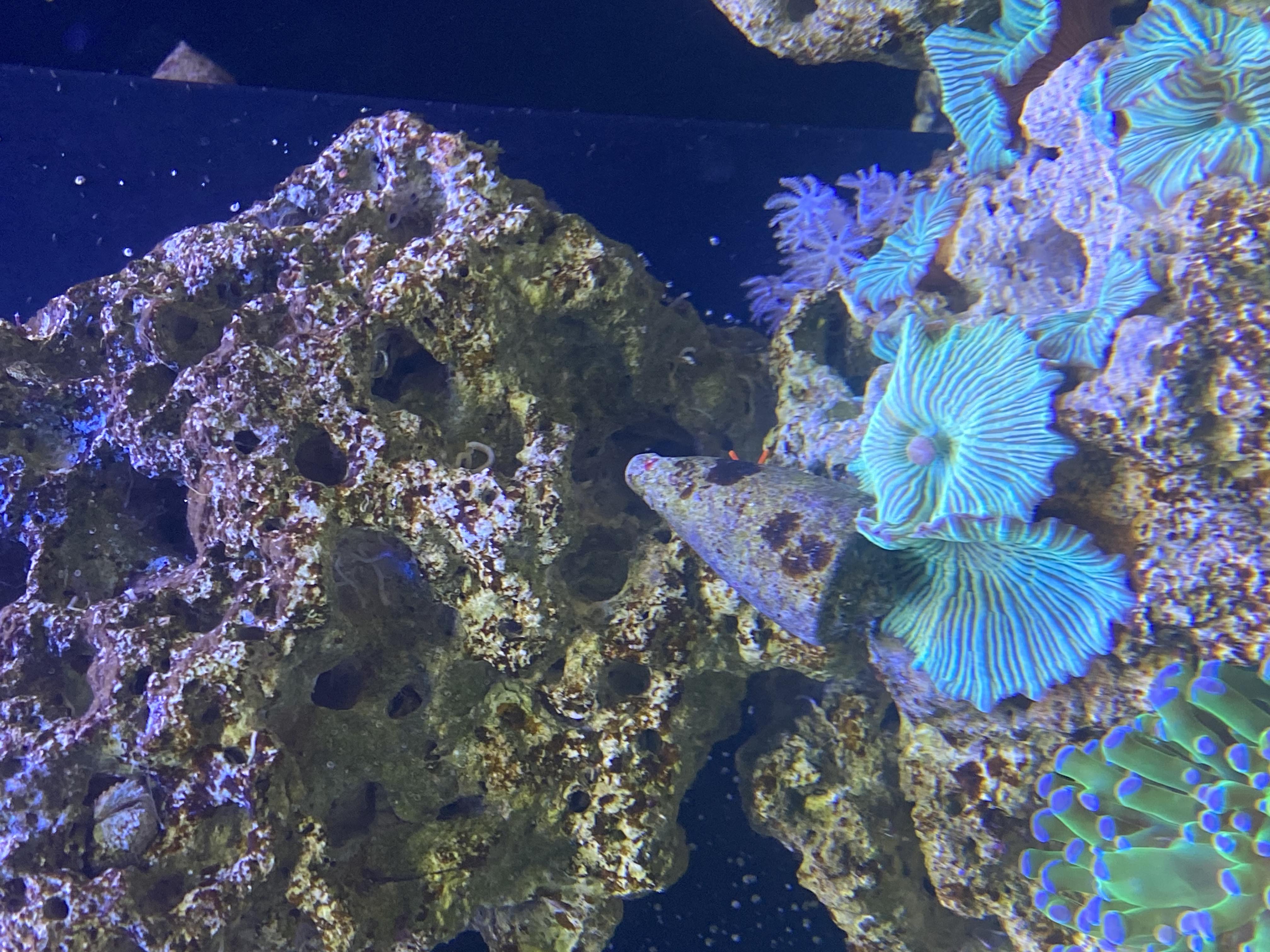 Displaytanken Dette akvarie er et Eheim Incpiria 300 marine akvarie som jeg købte brugt i januar 2023. Jeg har selv lavet det fra gråt til sort og ellers lavet små detaljer så det blev lidt mere nice, og jeg ikke havde de samme frustrationer som jeg havde ved mit gamle. Såsom plade som skjuler alle kabler og har controllere monteret.