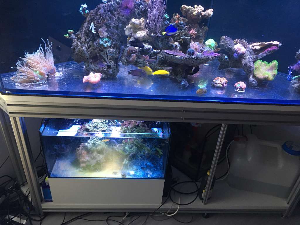 jeg genbruger min sump fra mit 330 ltr som har fint returkammer, plads til en bk mini 200 (den genbruger jeg også), plads til en rowa reaktor og et lille refugium.