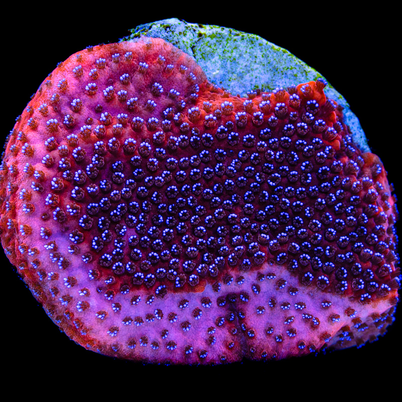 Montipora af superman/sunset klassen. Hvor alle de andre har de sædvanlige 12 tentakler og de er af samme farve. Men hos Mystic monti, der er 5 af de 12 tentakler anderledes farvet og det er meget usædvanligt.