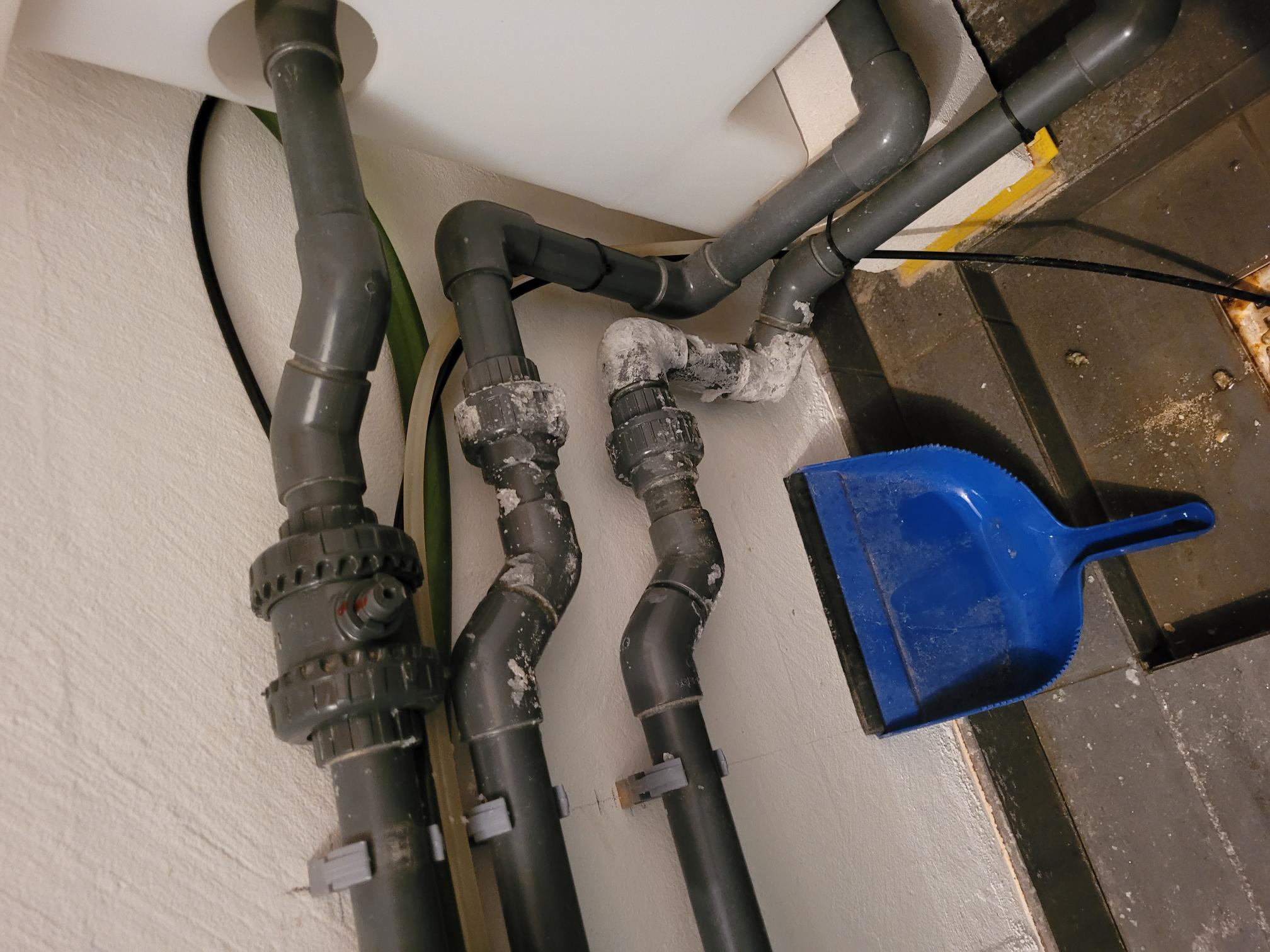 Nå, videre til de rør. Jeg gik og overvejede at sætte en slutmuffe på røret. Bare sætte dem fast med noget teflontape midlertidigt. Der er jo ikke pres på, så det burde kunne holde i den tid det tager.