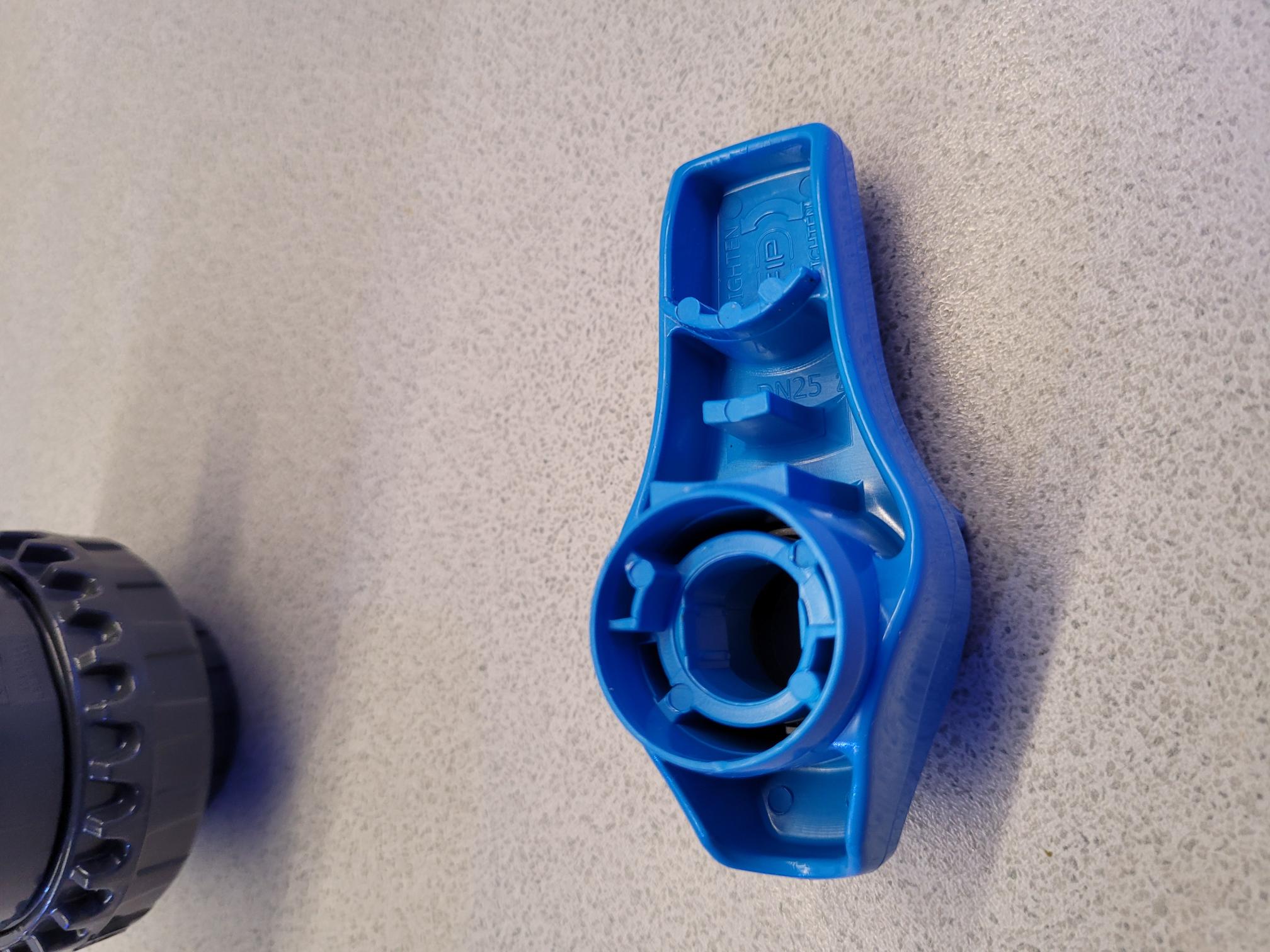 Næste læring var, Når du skal finde ud af hvilket fabrikat af kuglehane du har, så kig på håndtaget. Navnet på producenten står ofte på håndtaget. Hos mig gør det. Farven på håndtaget (mine er blå) er ikke altid nok. Så jeg fik byttet den forkerte hane til en med de rigtige byggemål. Da jeg nu var der, bestilte jeg 10 nye o-ringe. Så kunne jeg skifte dem når det blev nødvendigt.
