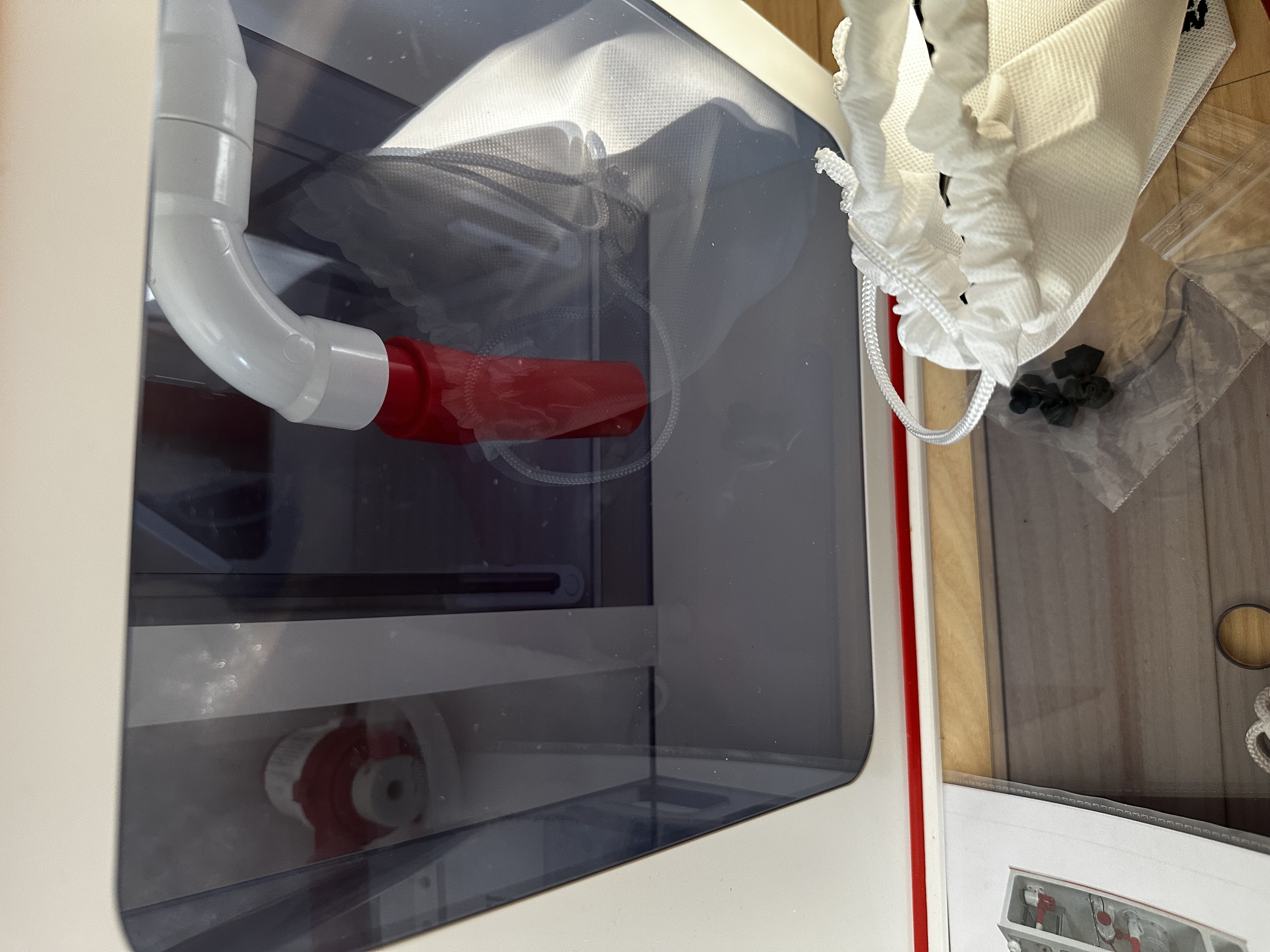Meningen var at den skulle suge fra toppen hvor vandet var klart og så puste helt nede i bunden. Den har en 90g på så det går direkte ned .