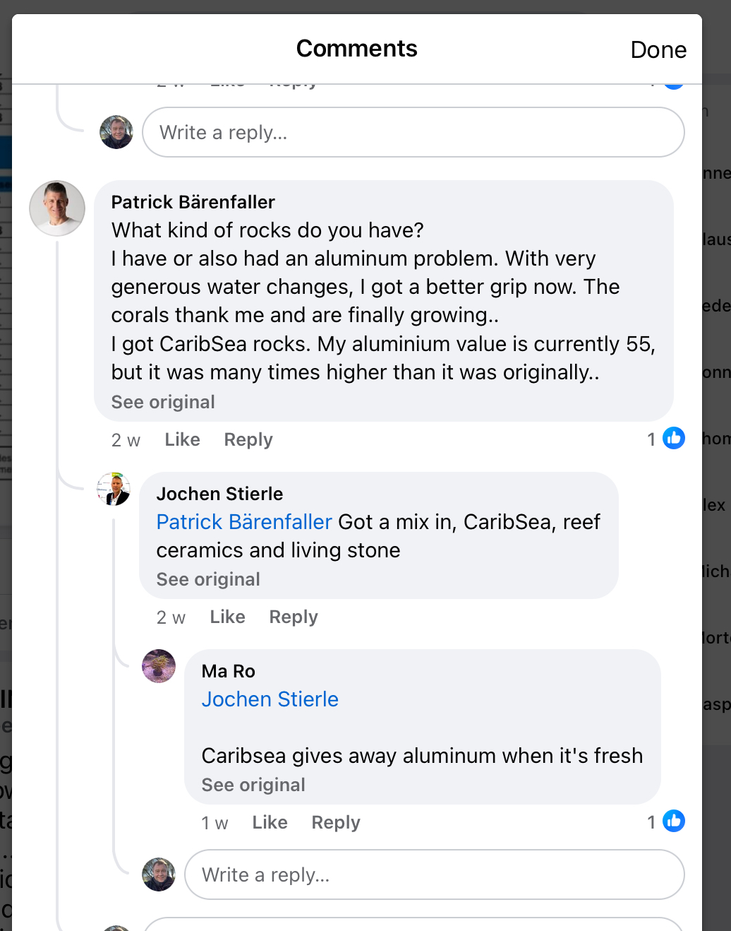 Har også læst i Moonshiner FB gruppen syntes dog ikke jeg fandt et brugbart svar MEN nu er jeg så gammel at jeg har lagt telefonen fra mig og åbnet computeren, så jeg giver det lige et skud til (for så kan jeg læse alt skriften på skærmen, som jo er vanvittigt småt på en telefonSeniorreefer skrev: lør 10. feb 2024 09:04Rowaphos binder aluminium men også po4ttkthomsen skrev: lør 10. feb 2024 08:50 Min ICP test viser et meget forhøjet aluminium niveau, jeg har læst og læst på reef2reef hvor der er en lang tråd og er kommet frem til at det nok stammer fra mine exxodus bac brik. Nu var grunden til de blev smidt i baljen jo at jeg ikke har så mange levende sten, så hvis bakterierne skulle have et sted og gro så var det der.