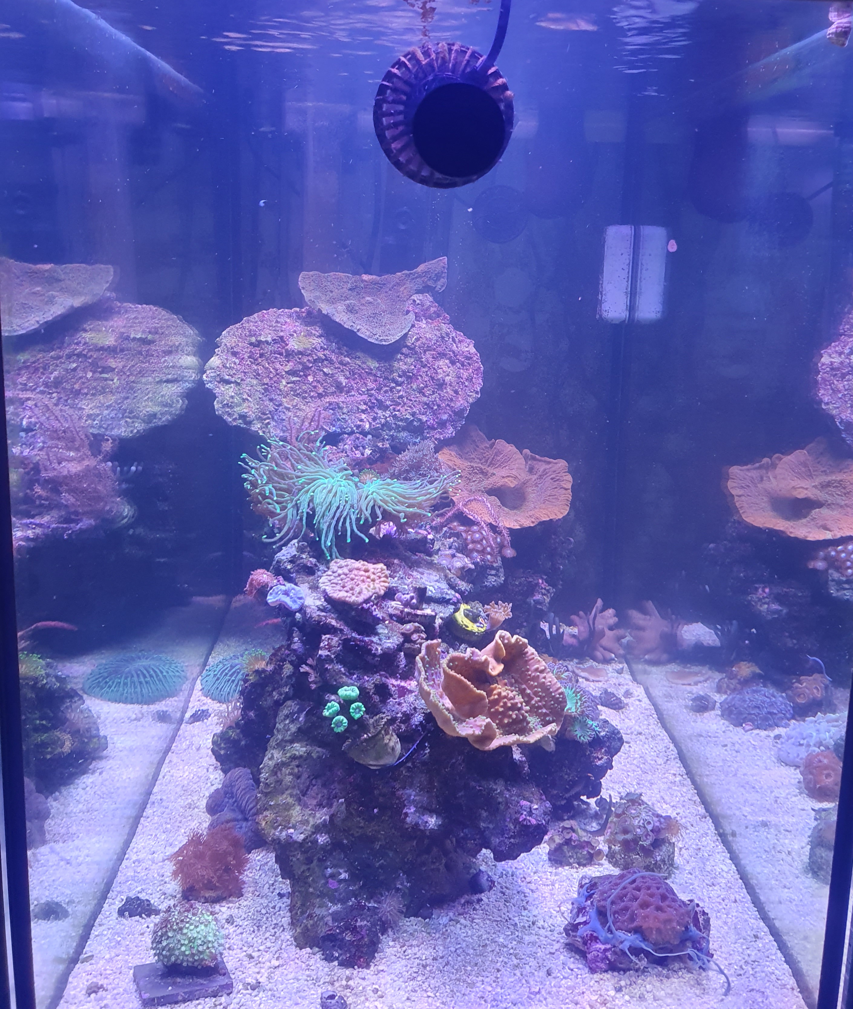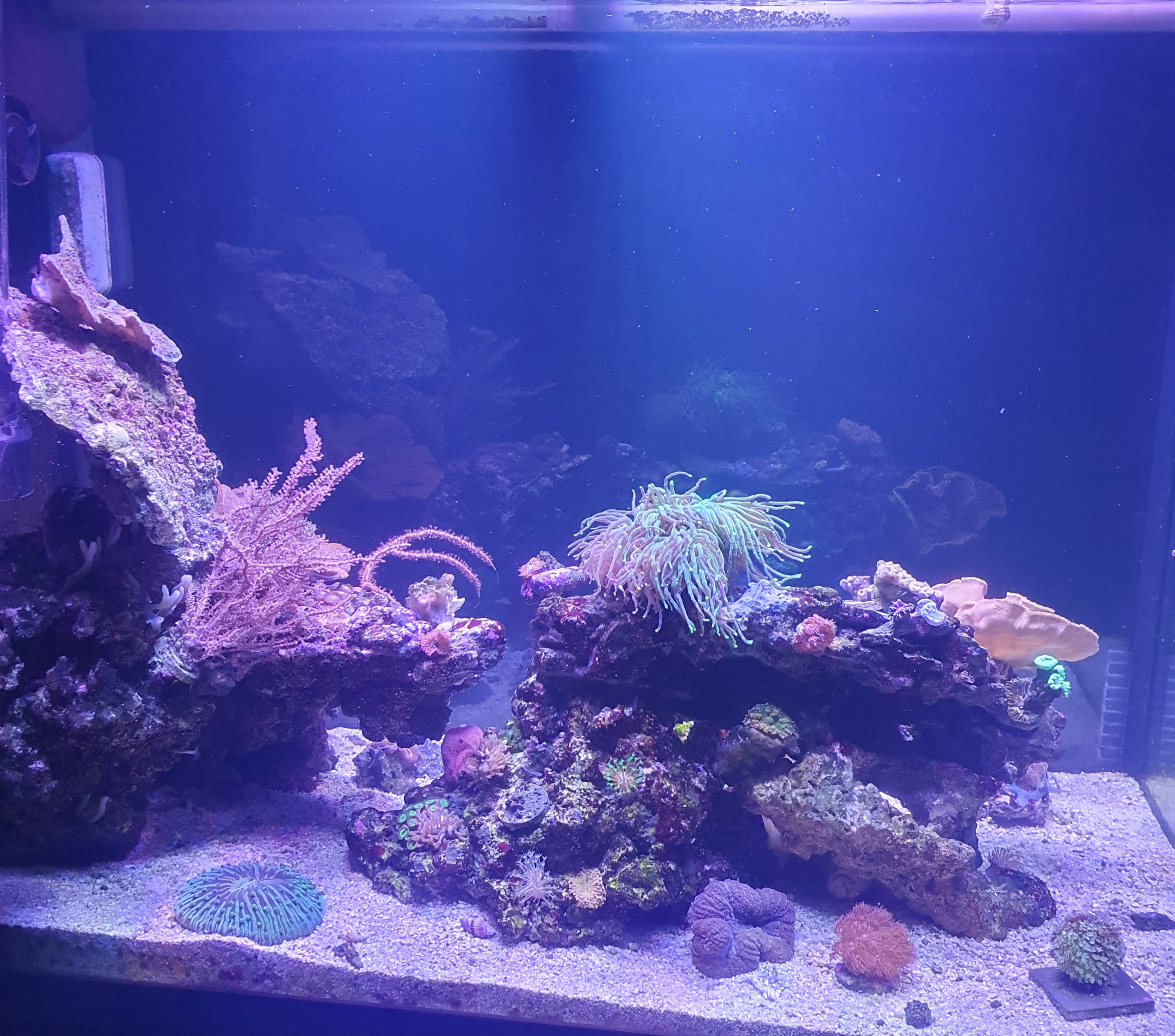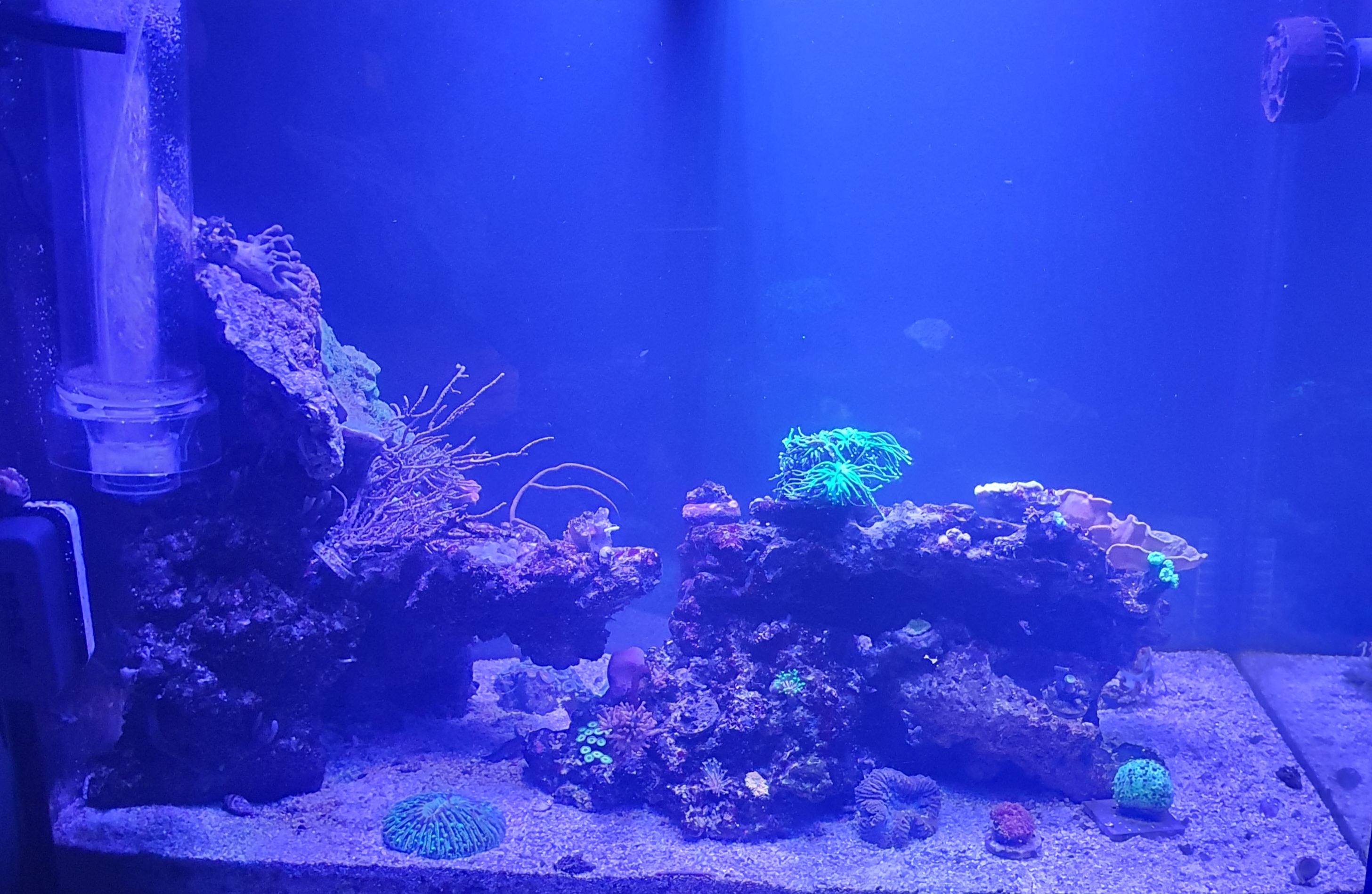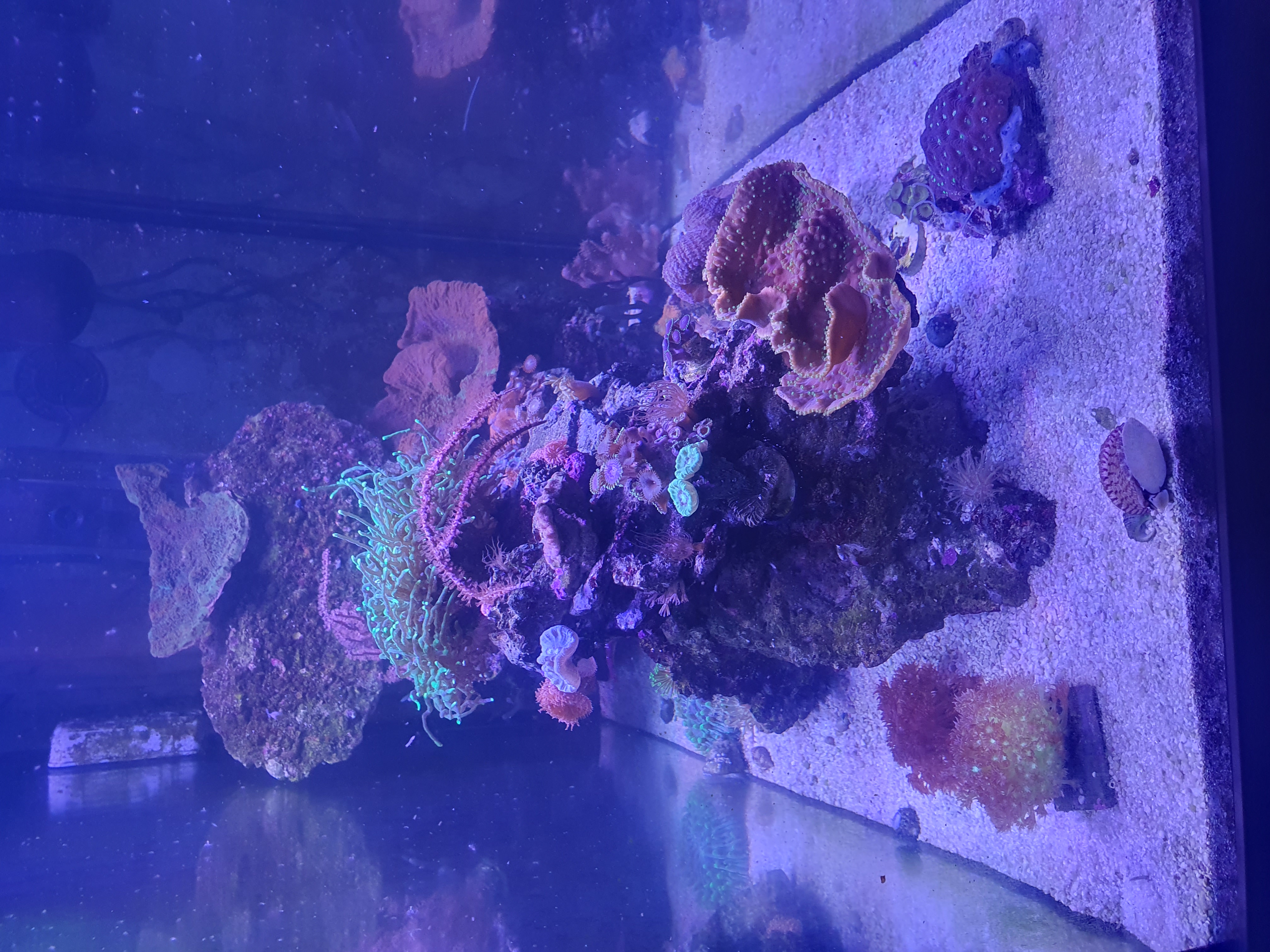 Efter der nye salt og tilsætning af co2 scrubber ... korallerne er begyndt med polyp pop den eneste der stadig halter efter er heliofungiaen (som står.på bunden )