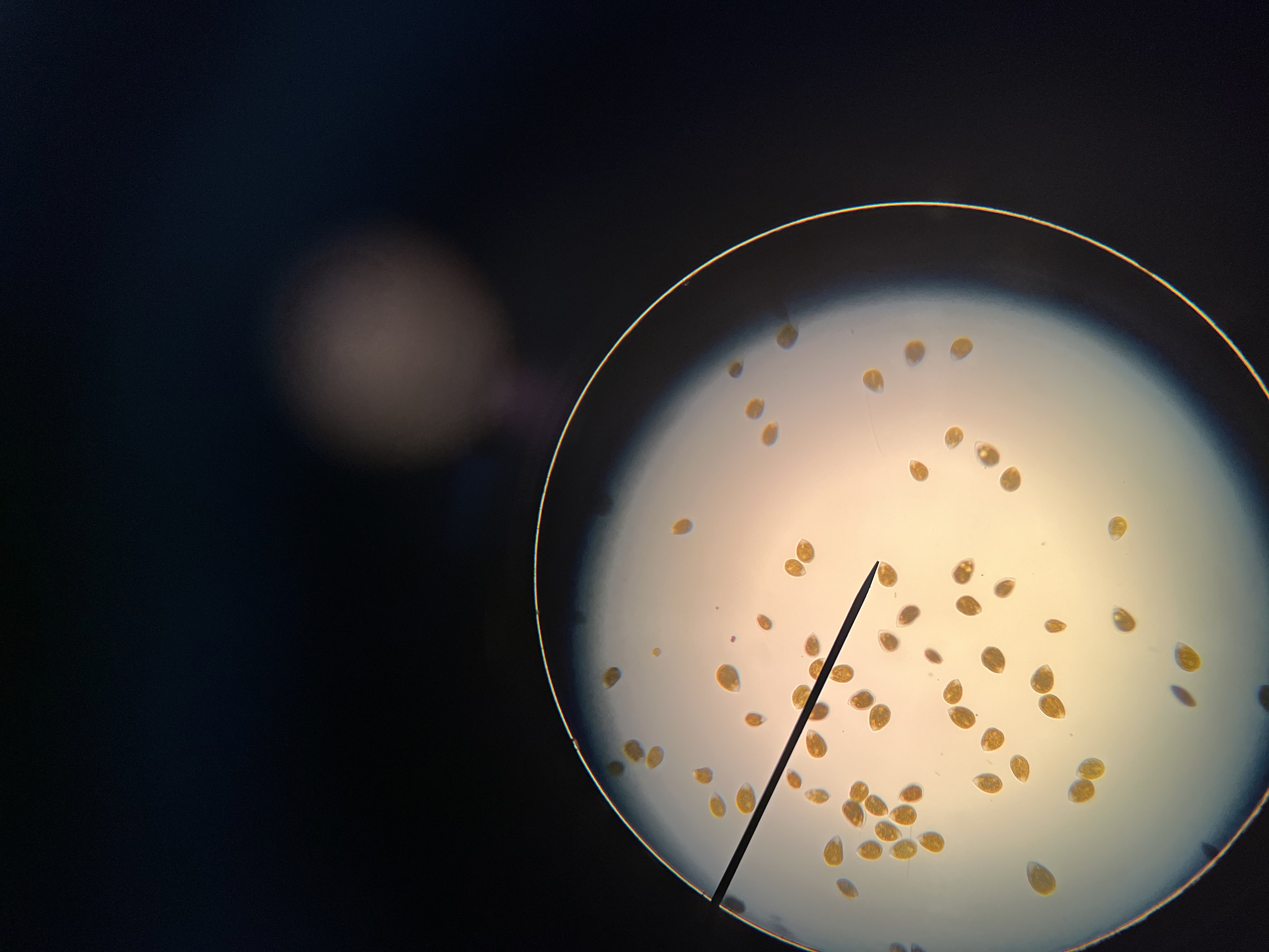 Så har der været gang i mikroskopet, og der er lagt billeder på FB, håber der kommer et id. Det er godt nok svært at tage billeder igennem sådan et lille rør