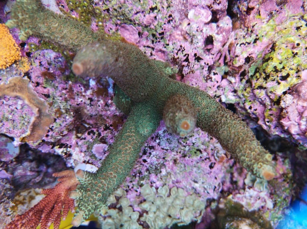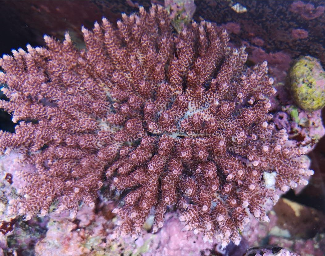 Foder: Jeg fodrer med følgende: Mysis/artemia 3 - 4 gange i ugen. Salat 2 gange i ugen. Nori tang hver dag. Alge og artemia flakes hver dag. Udover det får korallerne Fauna marin Min s 2 gange om ugen og 250 ml plankton hver dag.