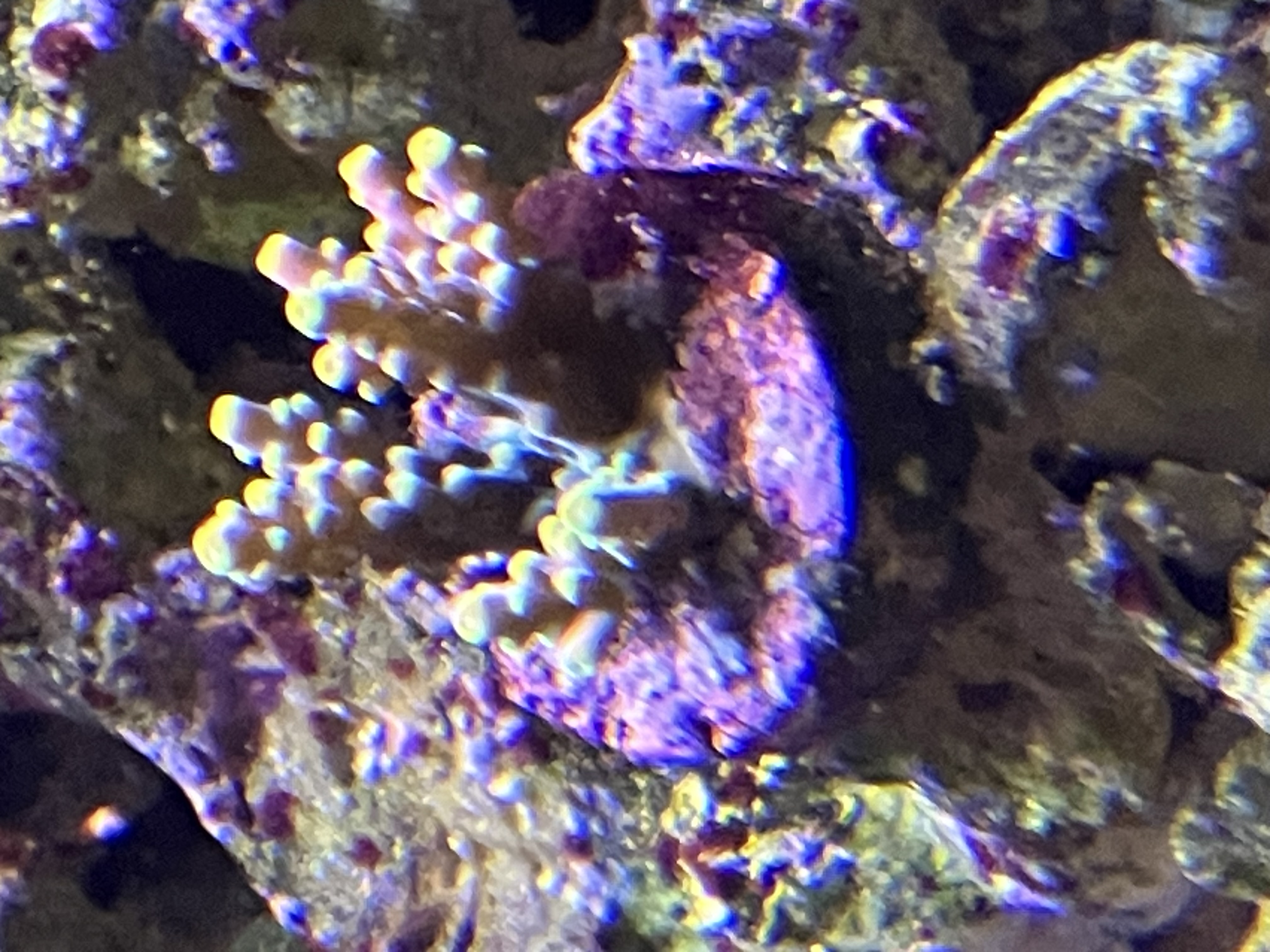 Mine acroporaer ser ud til at stortrives med det og polypperne kan næsten ikke komme længere ud- derudover kan jeg også se flere nye vækstspidser.