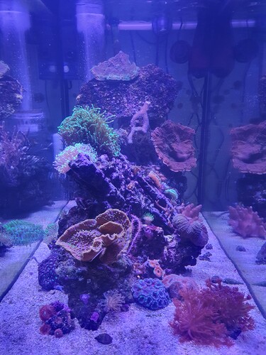 Jeg hat fået et ekstra akvarie som er identisk med dette og det har jeg skumle planer med... så dette bliver de nok med mindre anemoner gorgoniaer og blødkoraller og flere sps med tiden...