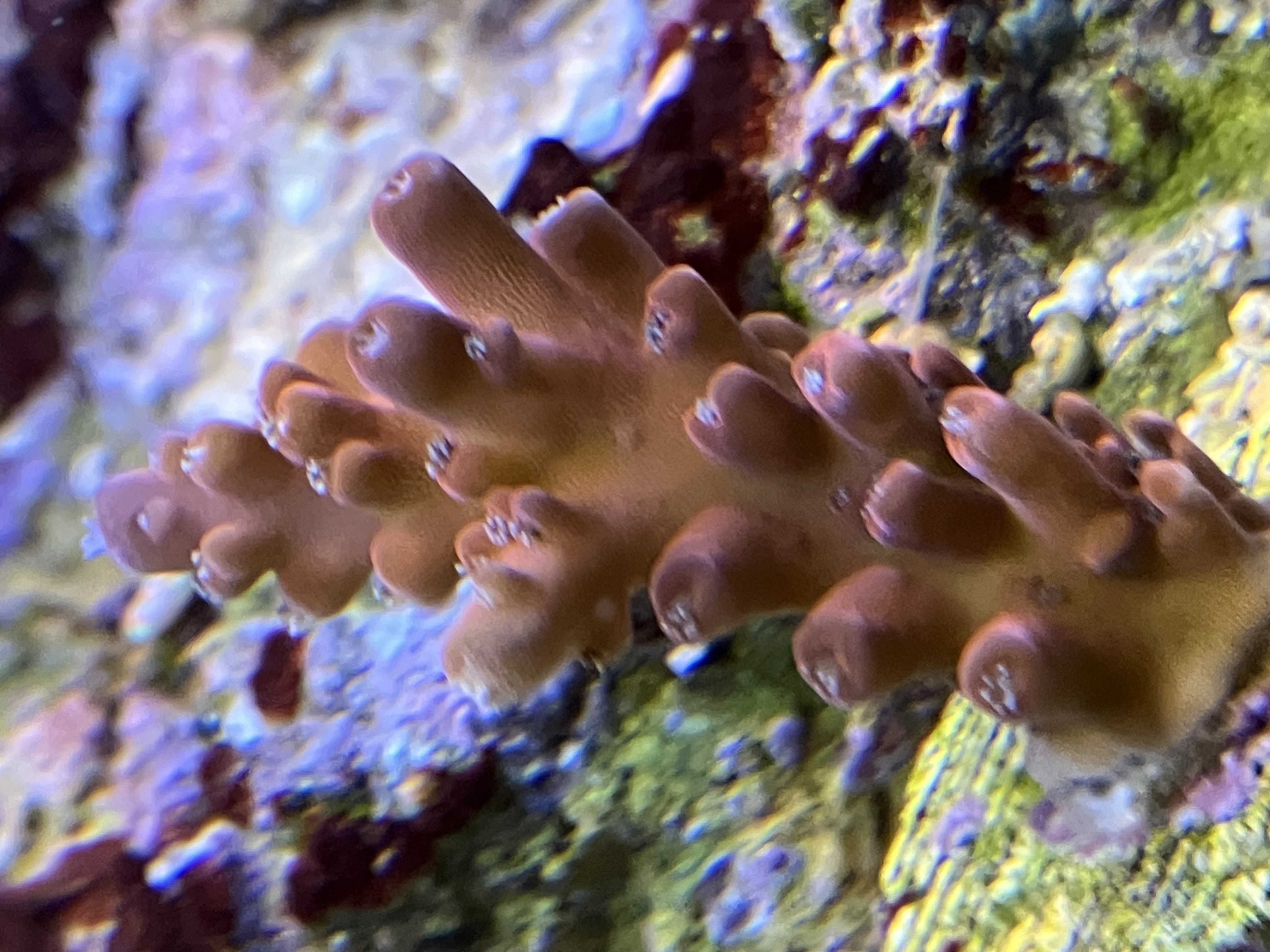 Mine acroporaer ser ud til at stortrives med det og polypperne kan næsten ikke komme længere ud- derudover kan jeg også se flere nye vækstspidser.