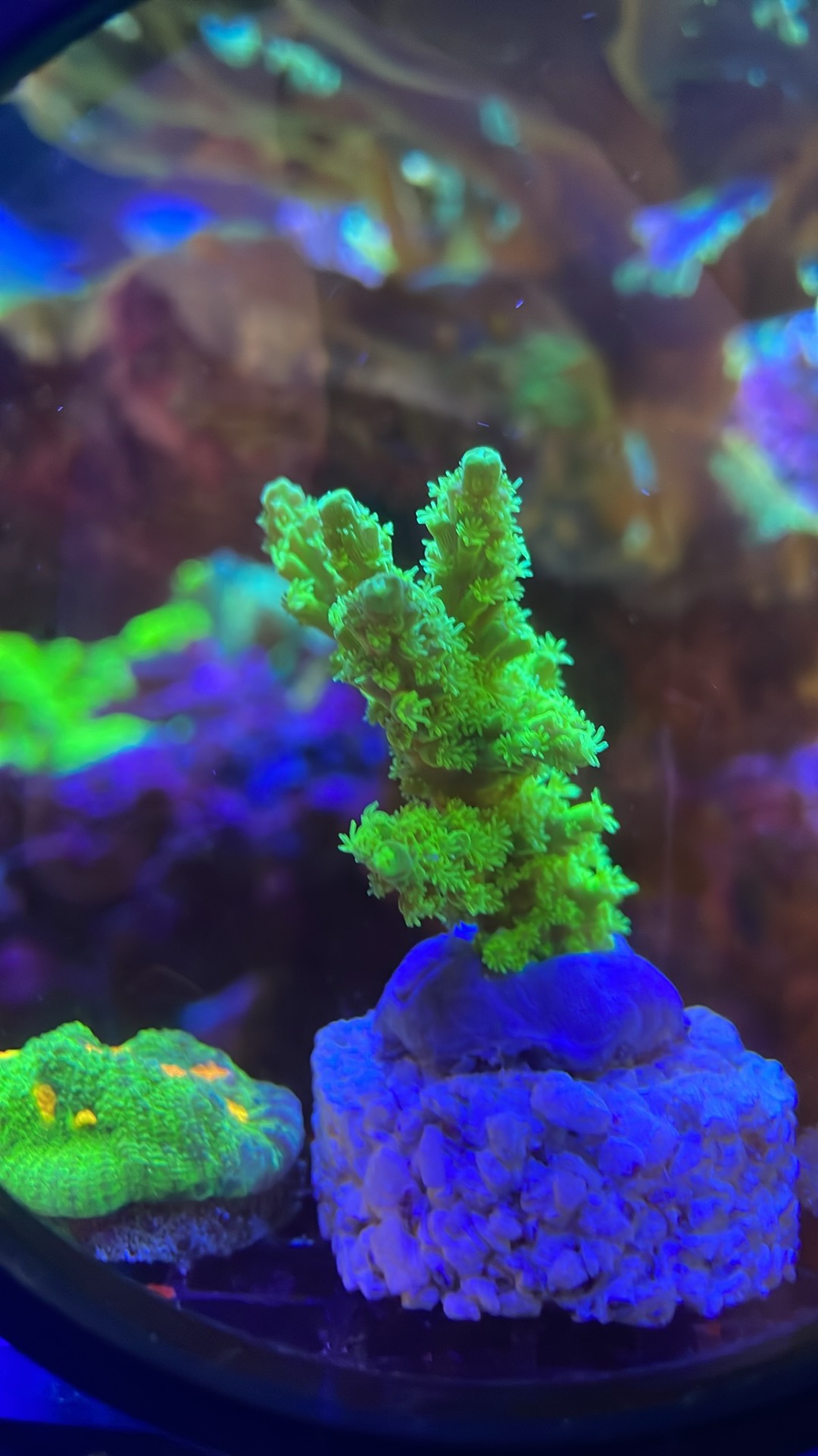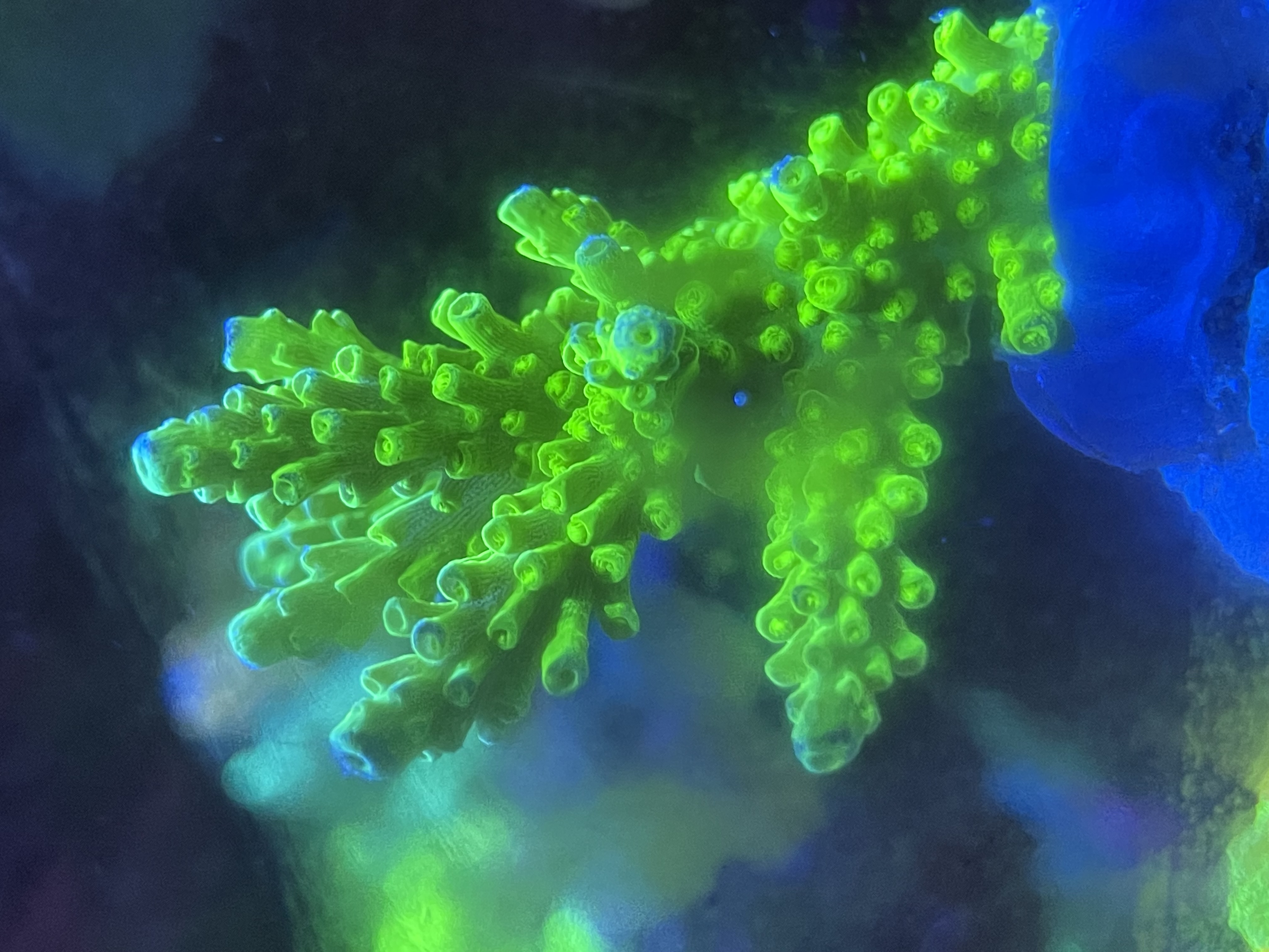 Du har allerede fået en del svar, men jeg kan da lige vise dig en glad koral, kontra en ikke så tilfreds koral. Jeg oplever dog koraller har flere stadier af tilfreds/utilfreds, som jeg vil prøve at vise dig. PE er kun en af dem. Vækst og farver spiller også ind, dog ikke helt på samme måde.