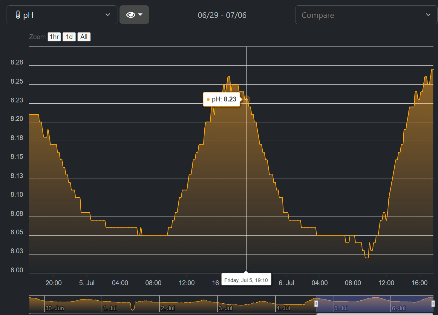 1. Jeg logger ikk kh, før Bolus var dosis delt op i 24 dele, hver time.Seniorreefer skrev: lør 6. jul 2024 16:49Sikke en flot PH graf. med bolus og spændende observation![]()