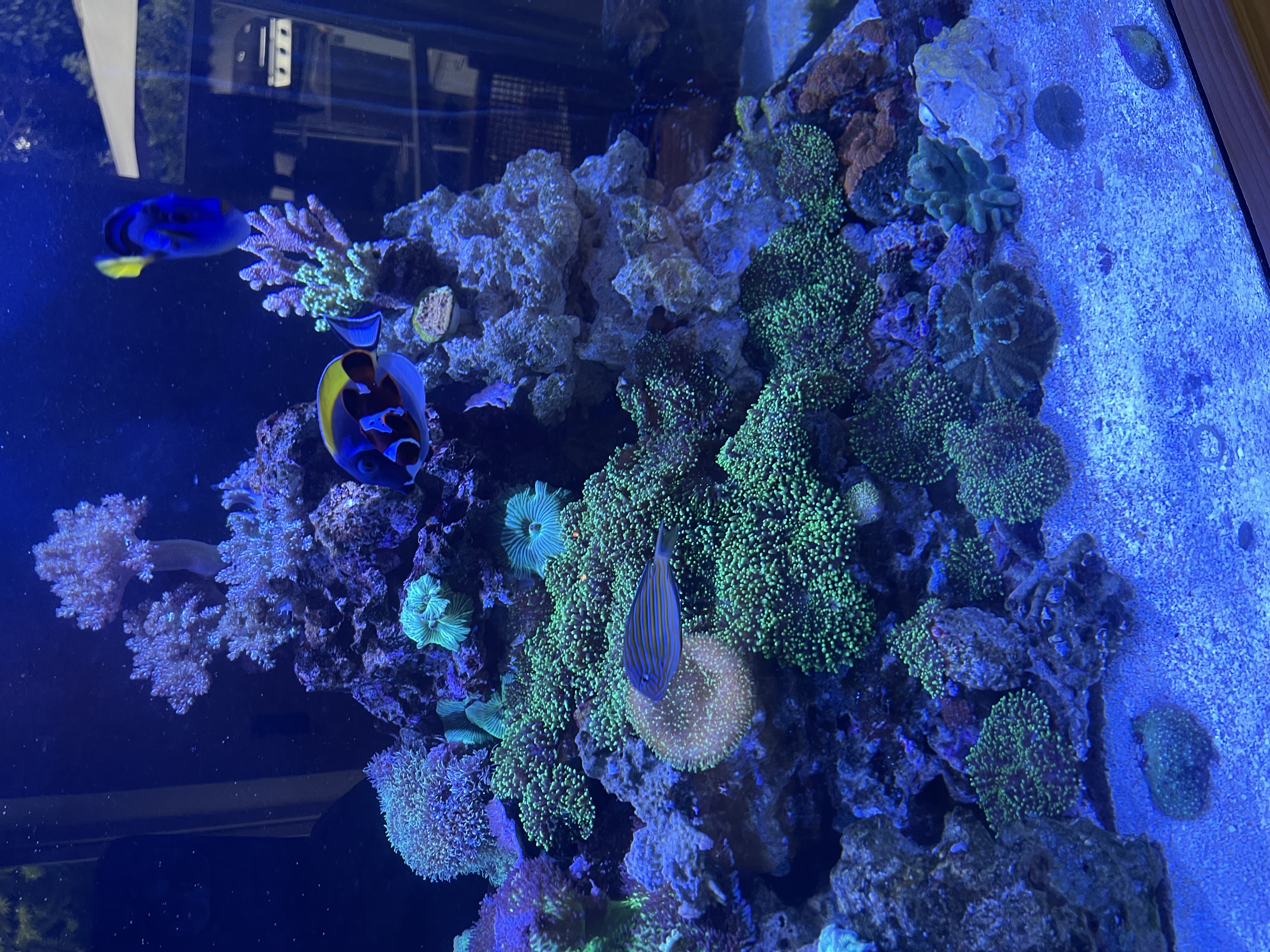 Btw mandarin fisken og klovne kirurg er svær at fange på kamera så de er lidt utydelig, de er hurtige 😅😁 og sandshifting gobien gemmer sig men forhåbentlig kommer frem imorgen ved mad tid, så prøver jeg at få et billede af den☺️