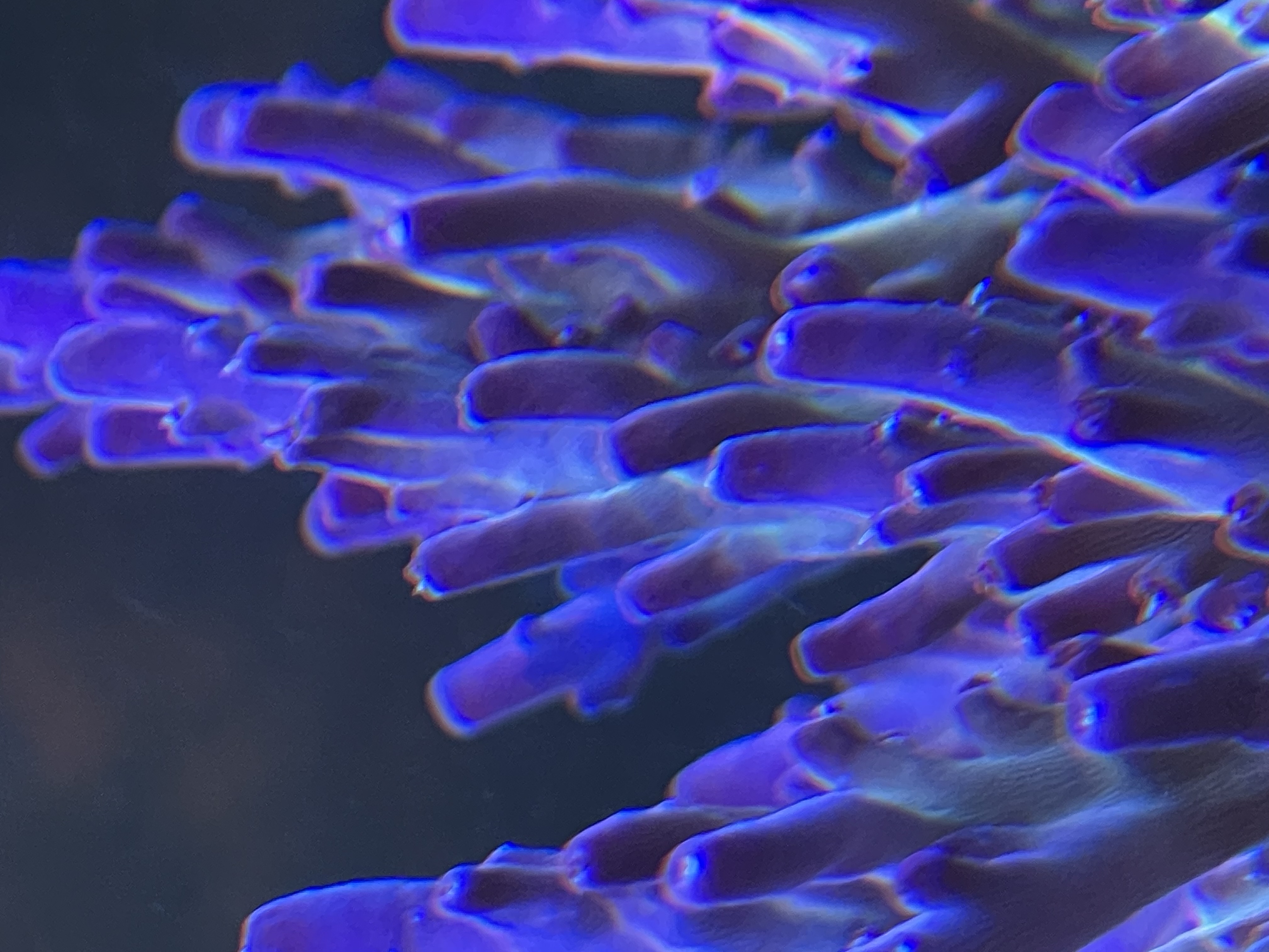 jeg troede jeg var blevet lidt snydt med skal være en US koral. 2 1/2 år og ser blå begynder at komme med vild pink polyp. Skal hvis bare have taget lidt top billeder