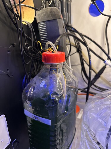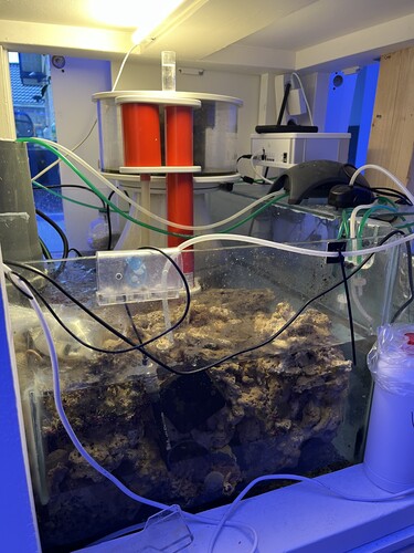 Jeg laver plankton i separate beholder og når de så er klar til at deles, så den kultur jeg vil tilsætte i akvarier flyttes over i en halvanden eller to liters sodavandsbeholder som får lys og egen luftpumpe i sumpen. Derfra suger ghl doseringsmakine det til sumpen og efter endt tilsætning, løber den baglæns så der aldrig står noget i slangen. På den må er al plankton jeg tilsætter levende, lige ind til det ramme skummeren 🥴