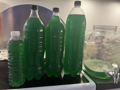 Mjj79 skrev: ons 22. jan 2025 19:14 Billede[/img][/img]Jeg kan se der er flere der tager fra en kørende kultur at fodre med? Og så tilsætter ny gødning? Nannochloropsis har det allerhøjeste næringsindhold når det er helt færdigt, dvs der ikke er mulighed for at gennemlyse en liter flaske fordi det næsten er sort i farven. Teorien er, at nanno splitter indtil en vis densitet af celler, og så lægger den næring til derefter. Dvs at tage fra en kørende kultur hver dag desværre er lidt kontra produktivt, da næringsværdien aldrig rammer max… det er bedre at have to kulturer kørende, og altid køre en til høst OFF så smide den på køl. Jeg har vedhæftet et billede med en der er klar til høst og nogen der ikke er