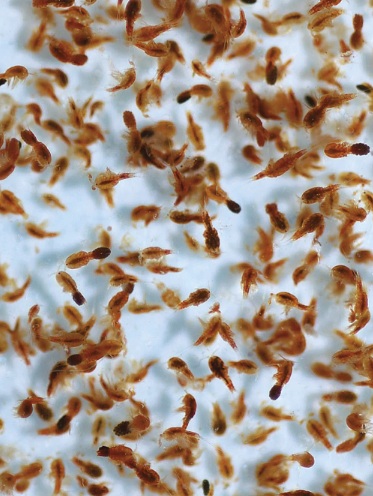 De små mysis skal jo fodres. Der er også klækket copepods, men de er dælme små: Hvor mange der er, skal jeg ikke kunne sige, men de er røget i deres tank og der er sat i gang på ny. Nu 4 x så mange, da første forsøg her kun var en tester.