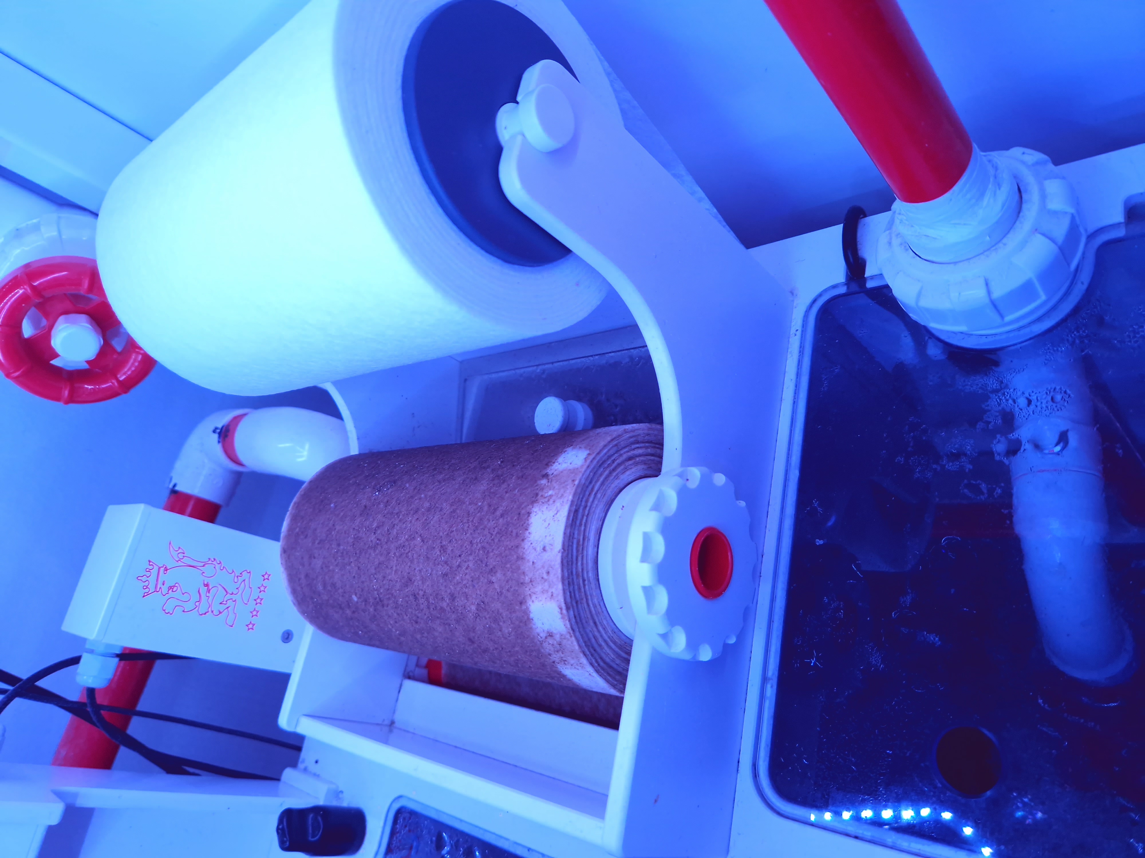 Filterrullen er sat til at rulle automatisk med en udvendig sensor. Førhen gjorde jeg det manuelt, for at spare på rullen, men det var træls for vandstanden i sumpen når jeg glemte det. Med mindre tid på hånden, har jeg sat sensoren til.