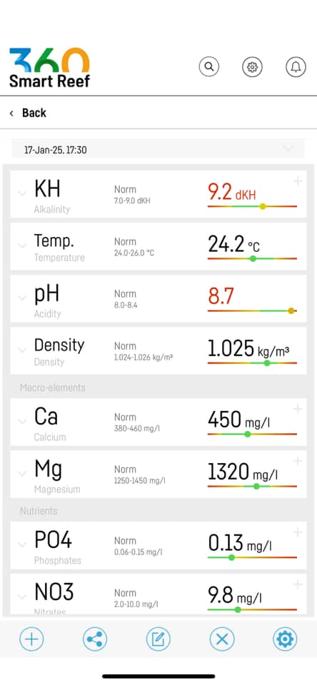 Intet synligt tegn på hvad der er sket, mine doseringsbeholdere er alle på niveau. Mistænker først en kalkudfældning eller lignende. Går straks i gang med at teste, men intet endnu synligt. Har for nyligt haft ICP test afsted og doseret efter denne, men det var +10 dage siden jeg var færdig med det, så mistænkte heller ikke en overdosering af sporestoffer.
