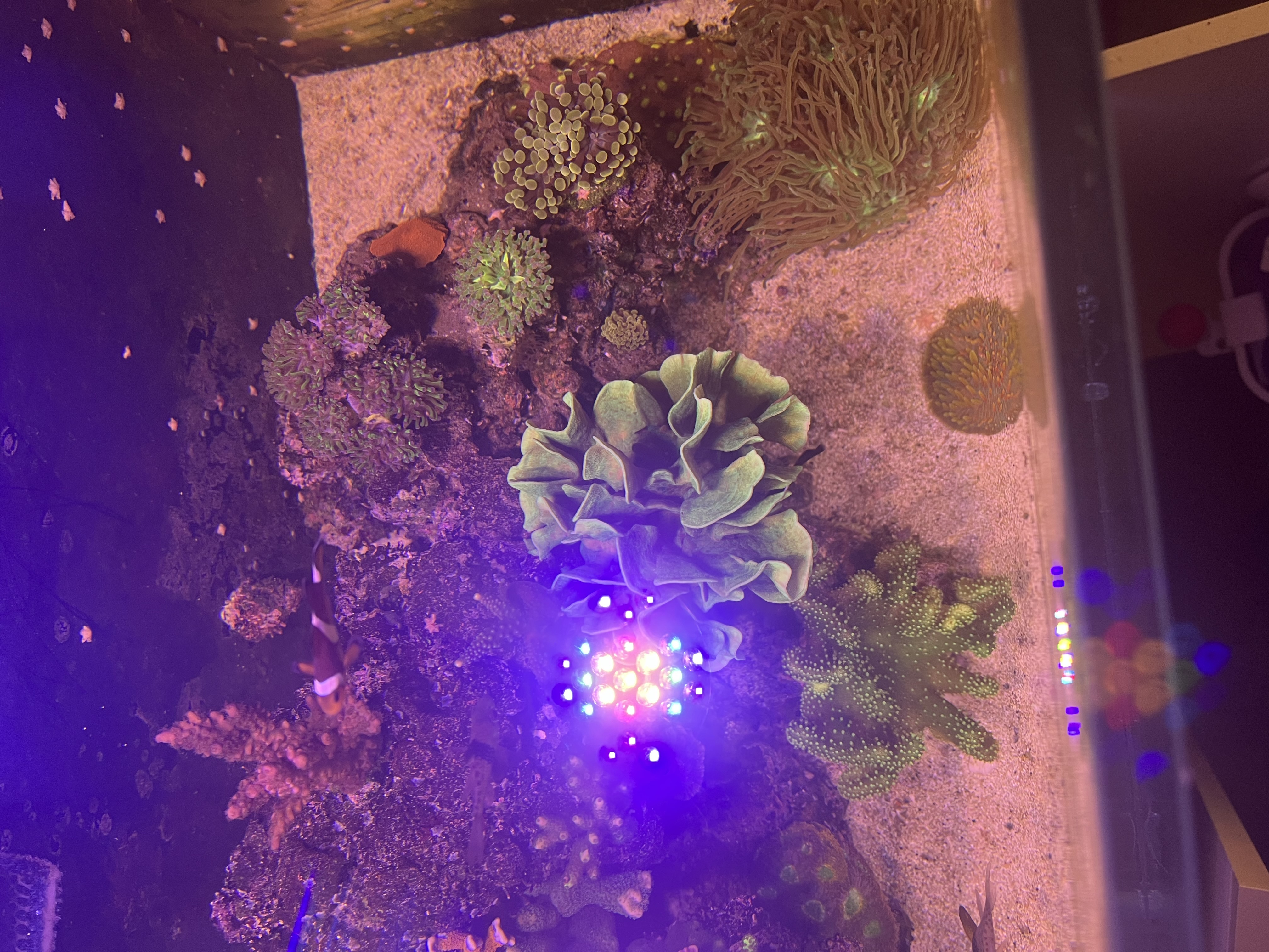 Opdatering 2 er, at min Maxspect Razor lampe valgte at stå af for en måned siden, lørdag formiddag. Men heldigvis var @JEGL bare en helt og fik købt en Radion G4 lampe kl. sent en lørdag aften, så tak for at være en stjerne. Reklamation af Maxspect er en hel anden sag, men den tager vi en anden gang. Men kors, Radion er sgu min nye yndlingslampe. Nem at sætte op, og så spiller den bare. Og kors, den skubber PAR ud. Så skyldes væksten pH, lys eller bare stabilitet? Det er sikkert en kombination af det hele. Så ligger jeg lidt dagen billeder op.![]()
