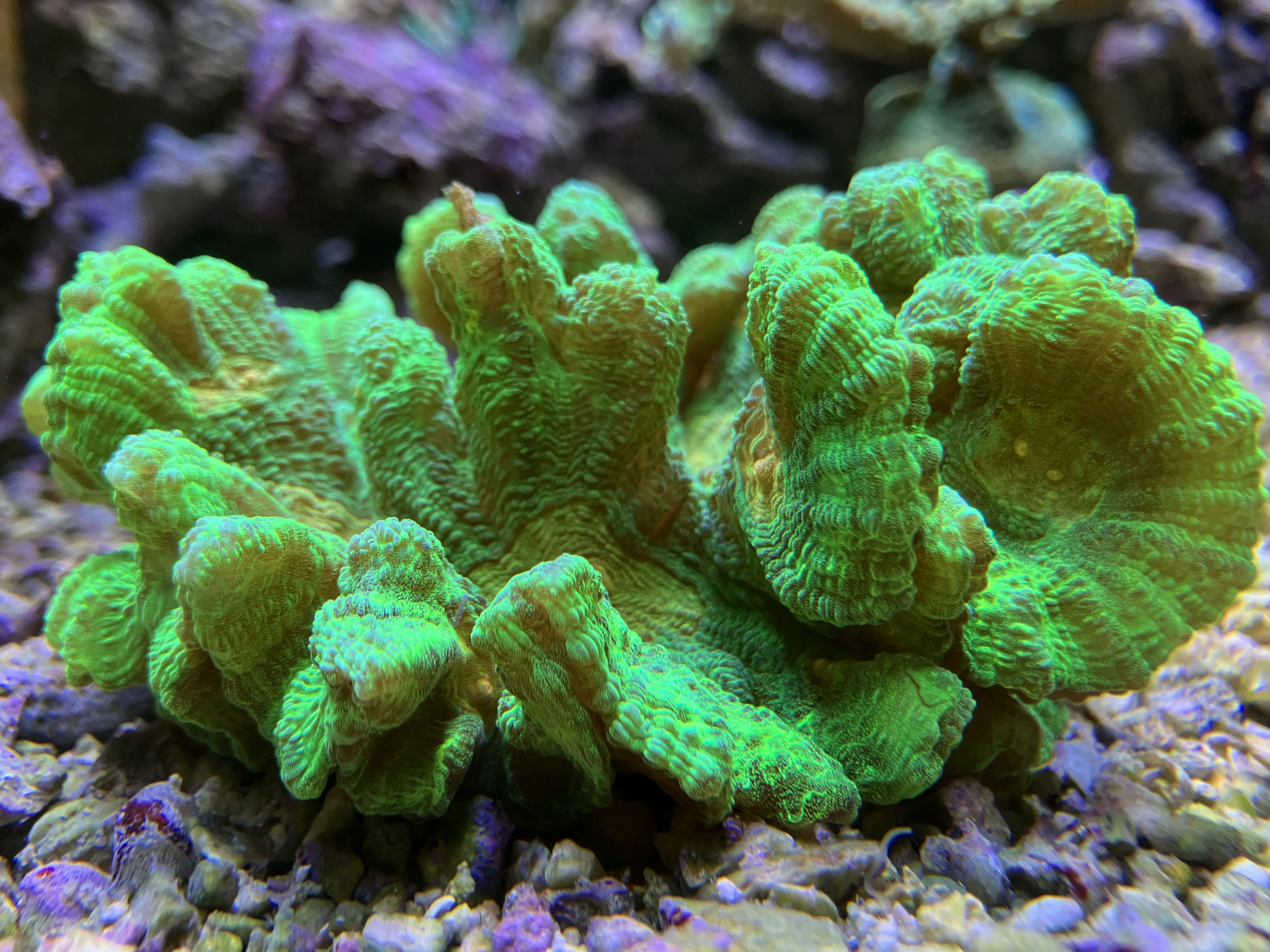 Galaxea gør det samme. Den ser så fredelig ud, men om natten - uha uha. Den kan virkelig også lave ravageNicki Henriksen skrev: man 14. apr 2025 09:18 Nu I nævner aggresive koraller så vil jeg da også lige smide Hydnophora ind i den, husker jeg købte så en billigt engang og den har lange tentakler som kan stikke ud om natten og brænde nærliggende koraller med nematocytter, alle min koraller som stod indefor 25cm af dem blev brændt og fik store skader heraf.