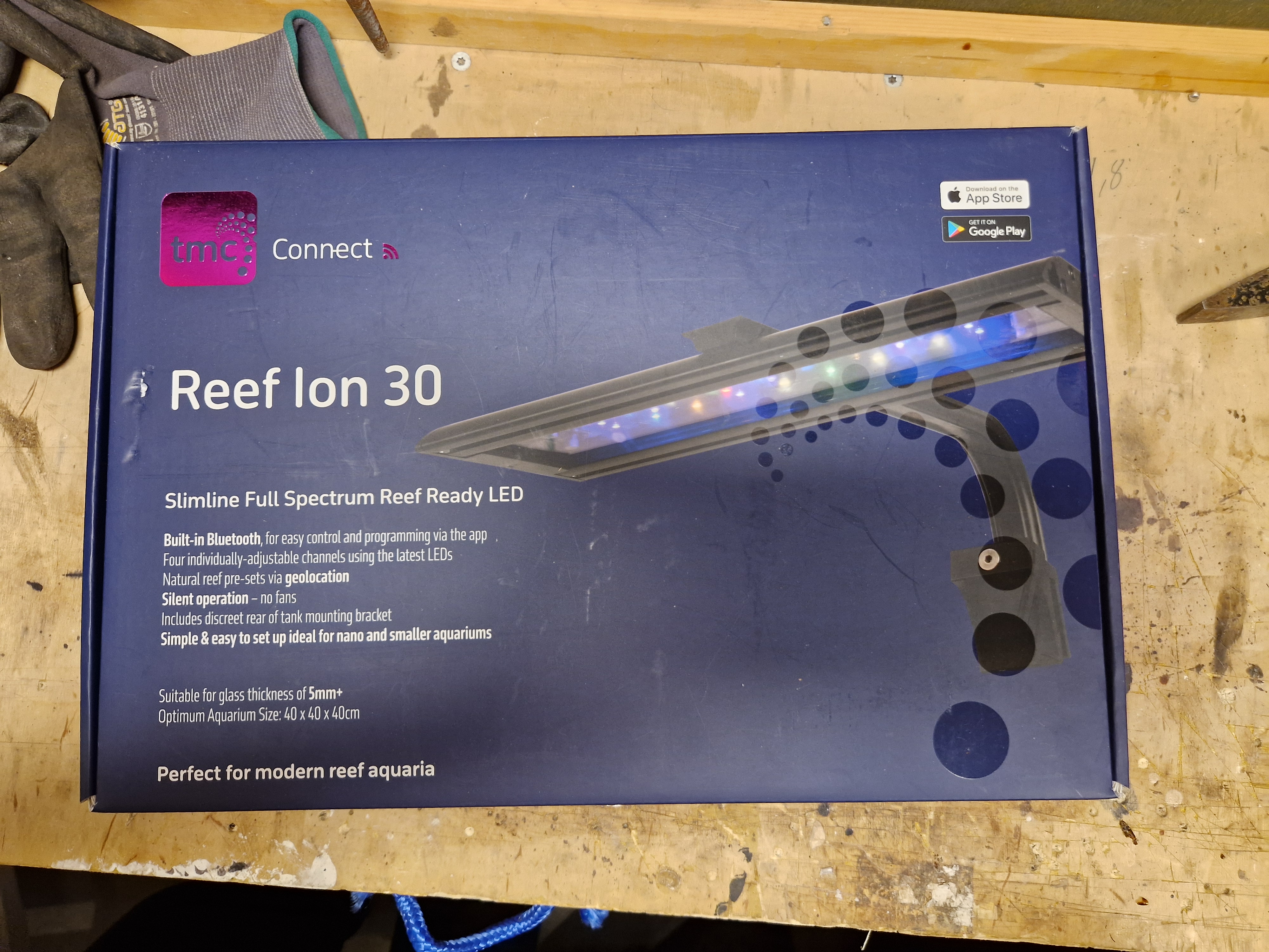Jeg sælger dette fine plug an play akvarie fra tmc ( next wave 85) på 85 liter... Der medfølger lampe, returpumpe, varmelegeme og en luft drevet skummer.. Har anden skummer der Kan til købes.... Akvariet har et par enkelte ridser, men ellers står det flot og er fra 2024... Der medfølger originalt skab med, men fronten kunne godt bruge en kan sort foile som er let at montere.