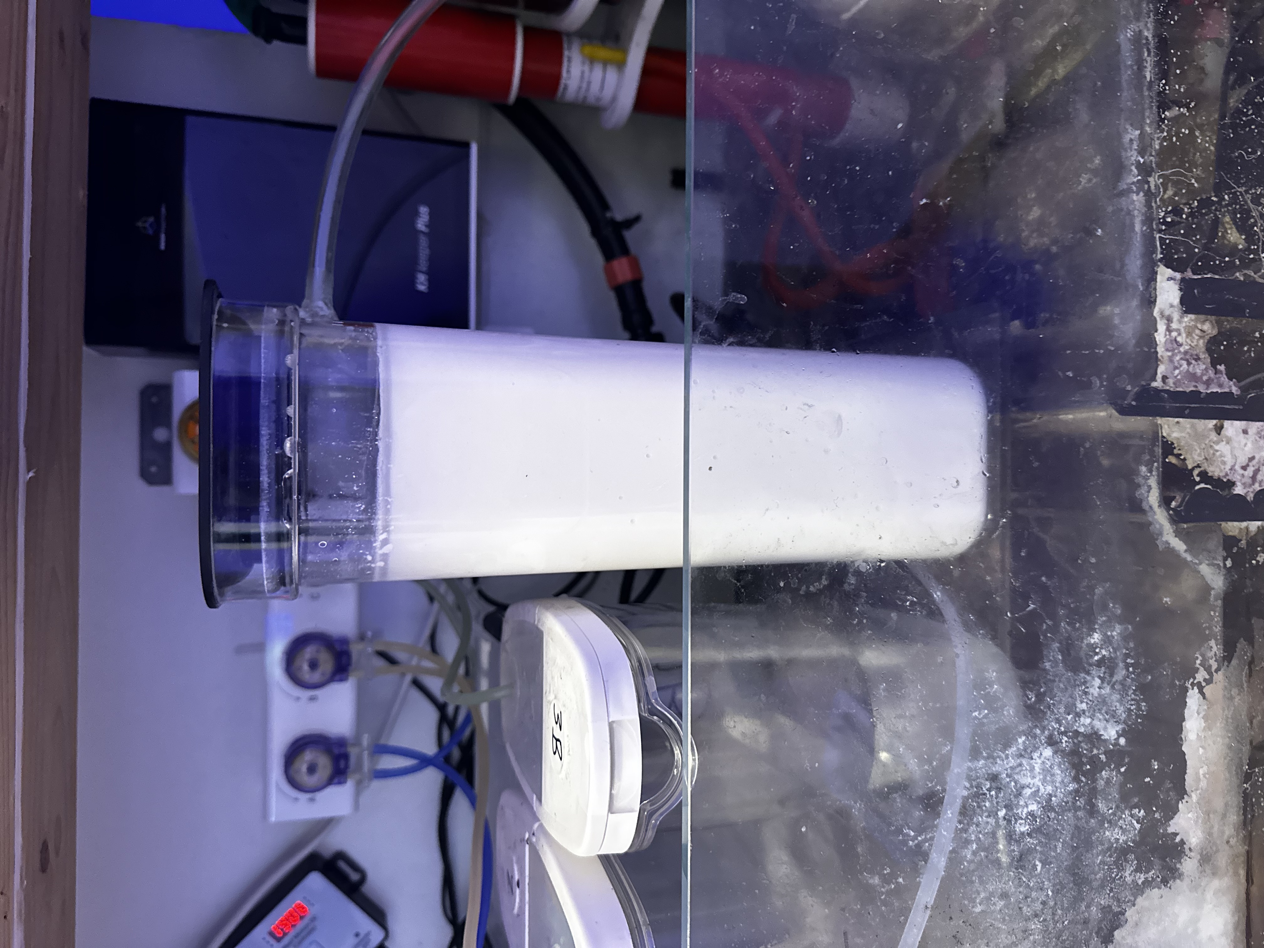 Dc pumpen (cirkulations/stirre/omrøringspumpen) Hvor sidder indsug og udtag i din kalkslur beholder? Indsug højt oppe og udblæs i bunden eller hvordan? Tænker selve pumpen er i et MEGA “hårdt” miljø, hvis den suger kalkslur med rundt?
