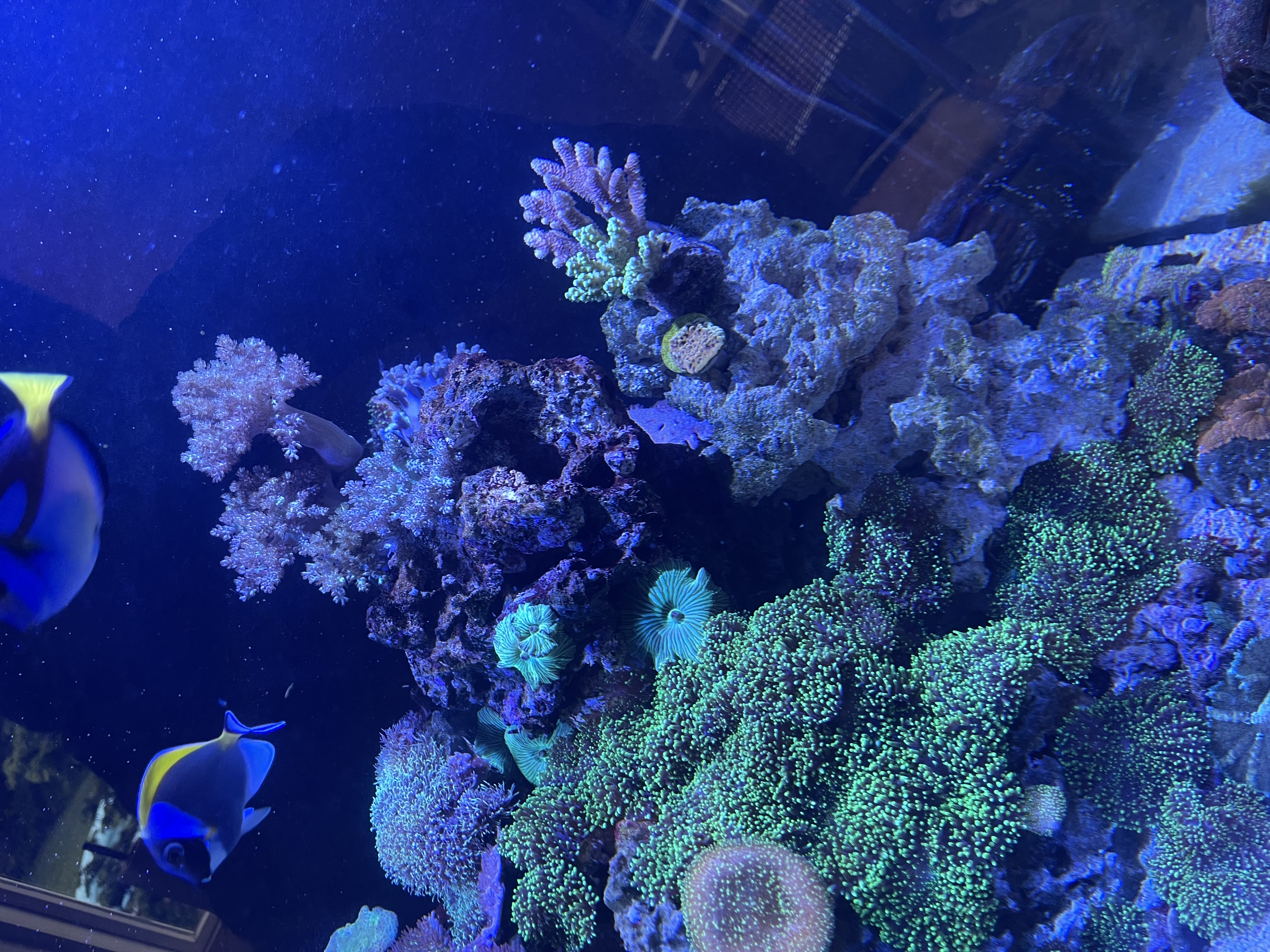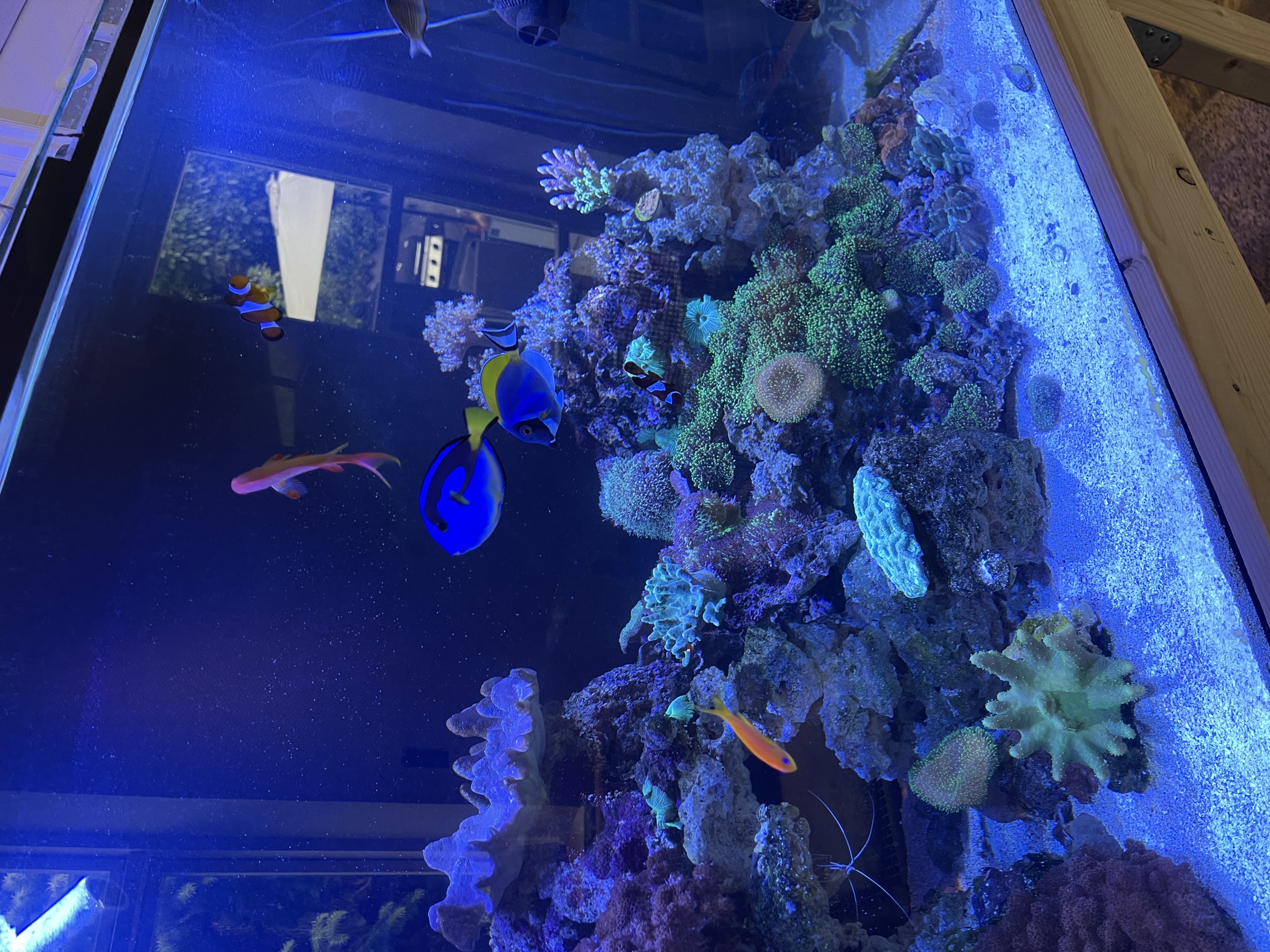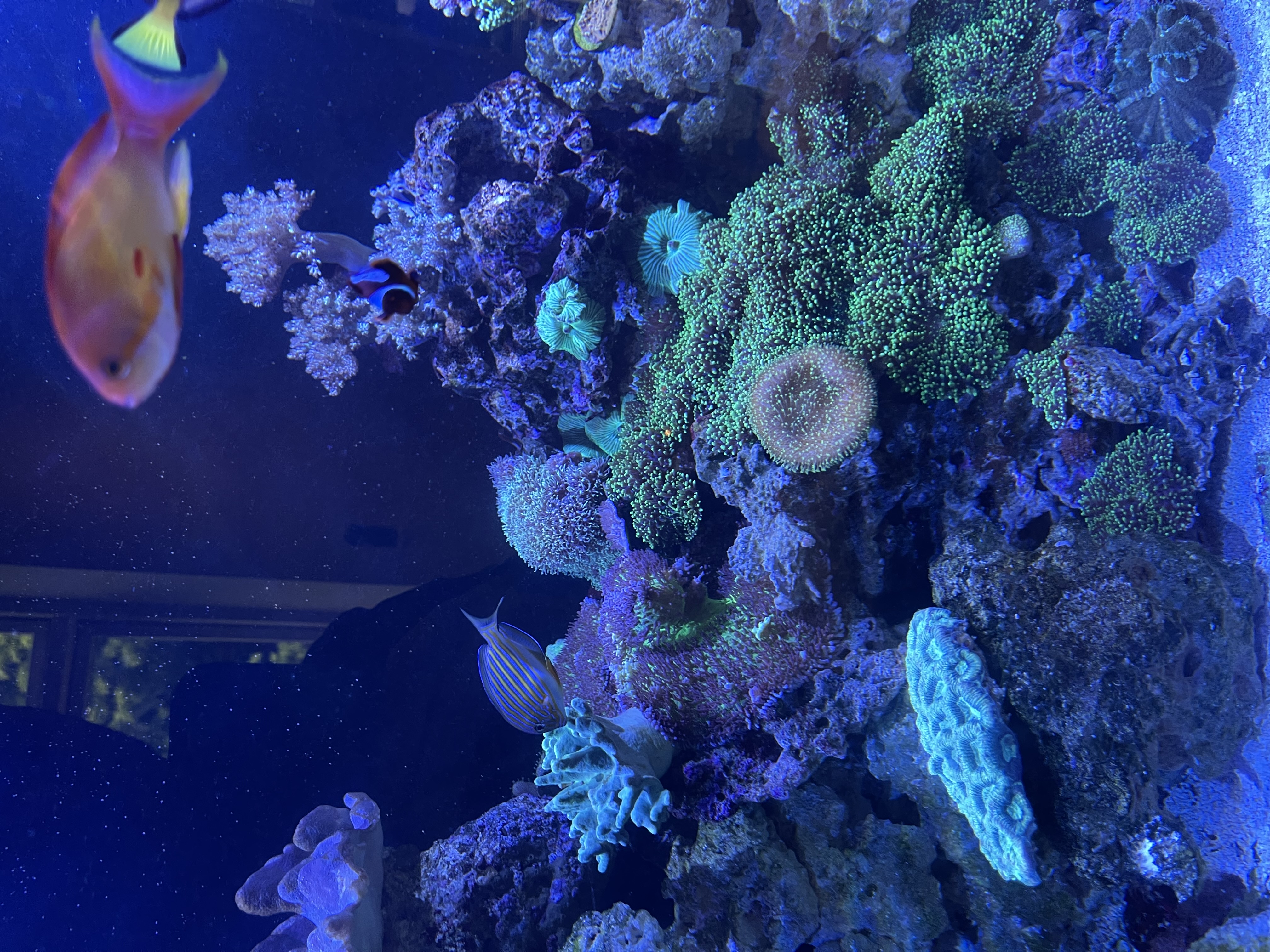 Btw mandarin fisken og klovne kirurg er svær at fange på kamera så de er lidt utydelig, de er hurtige 😅😁 og sandshifting gobien gemmer sig men forhåbentlig kommer frem imorgen ved mad tid, så prøver jeg at få et billede af den☺️
