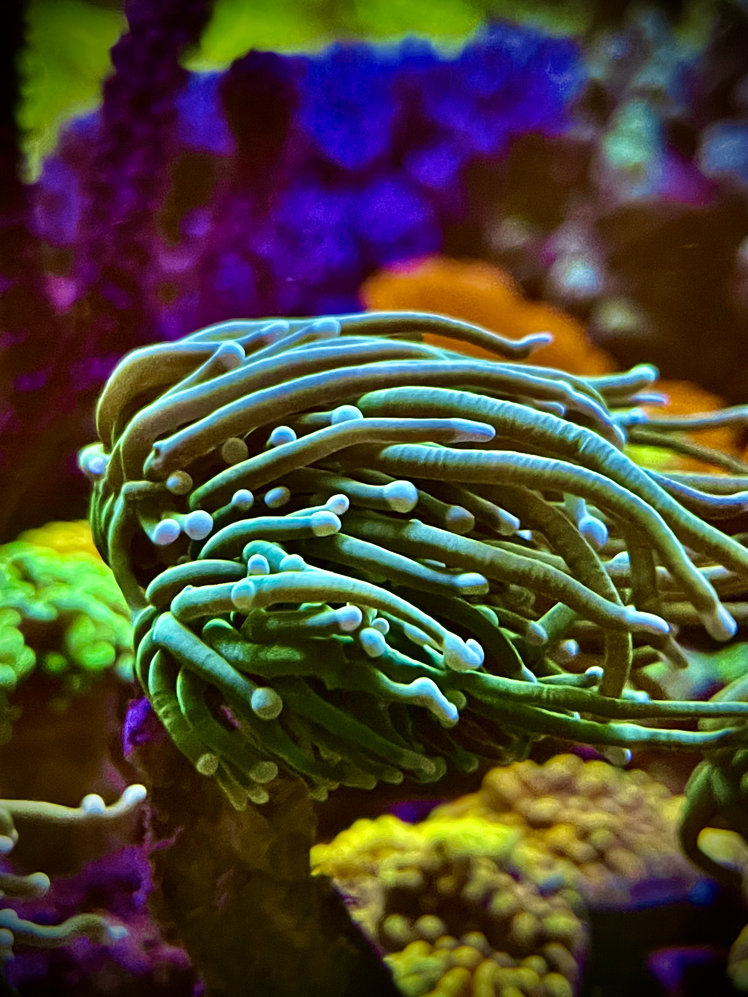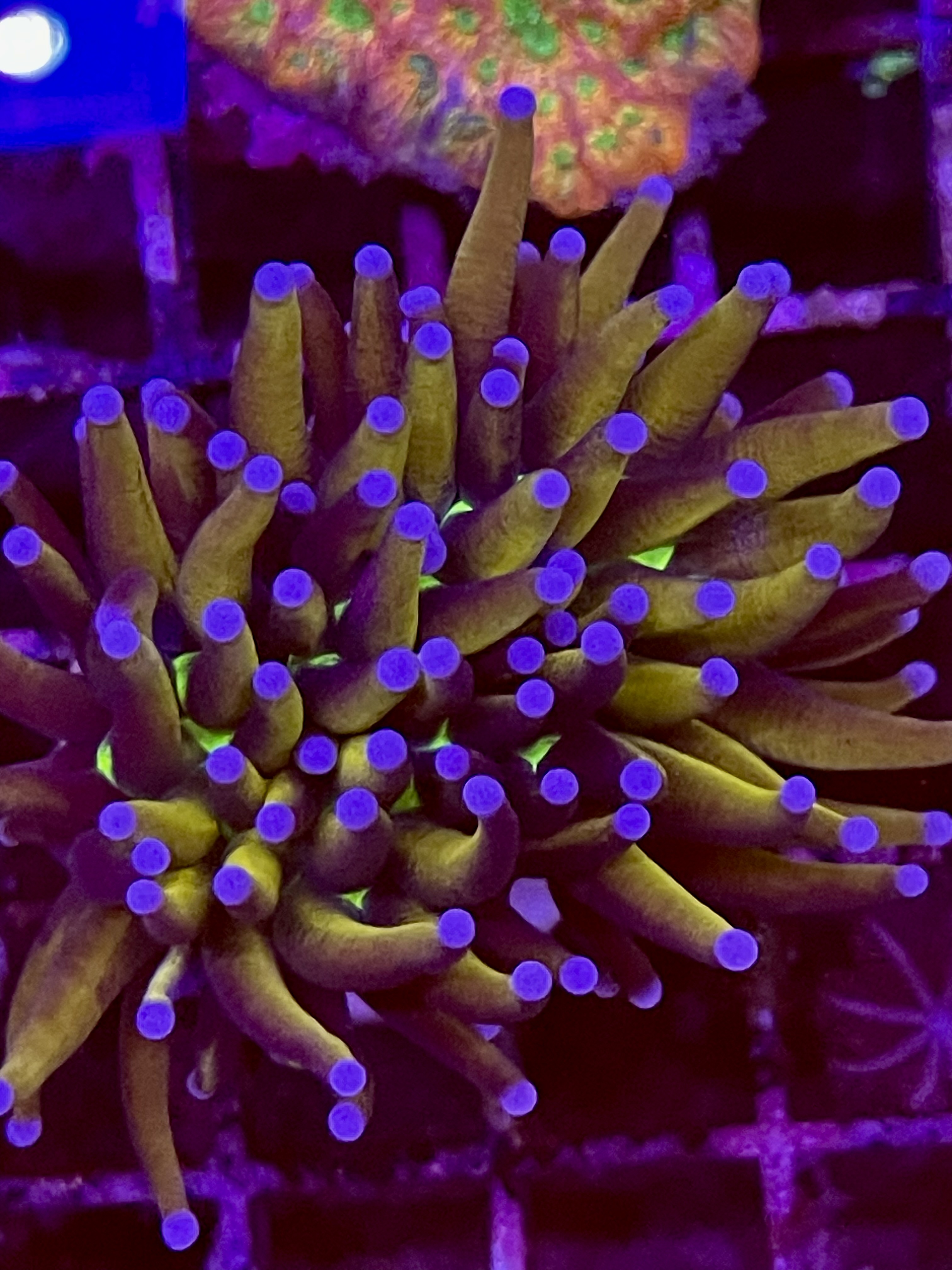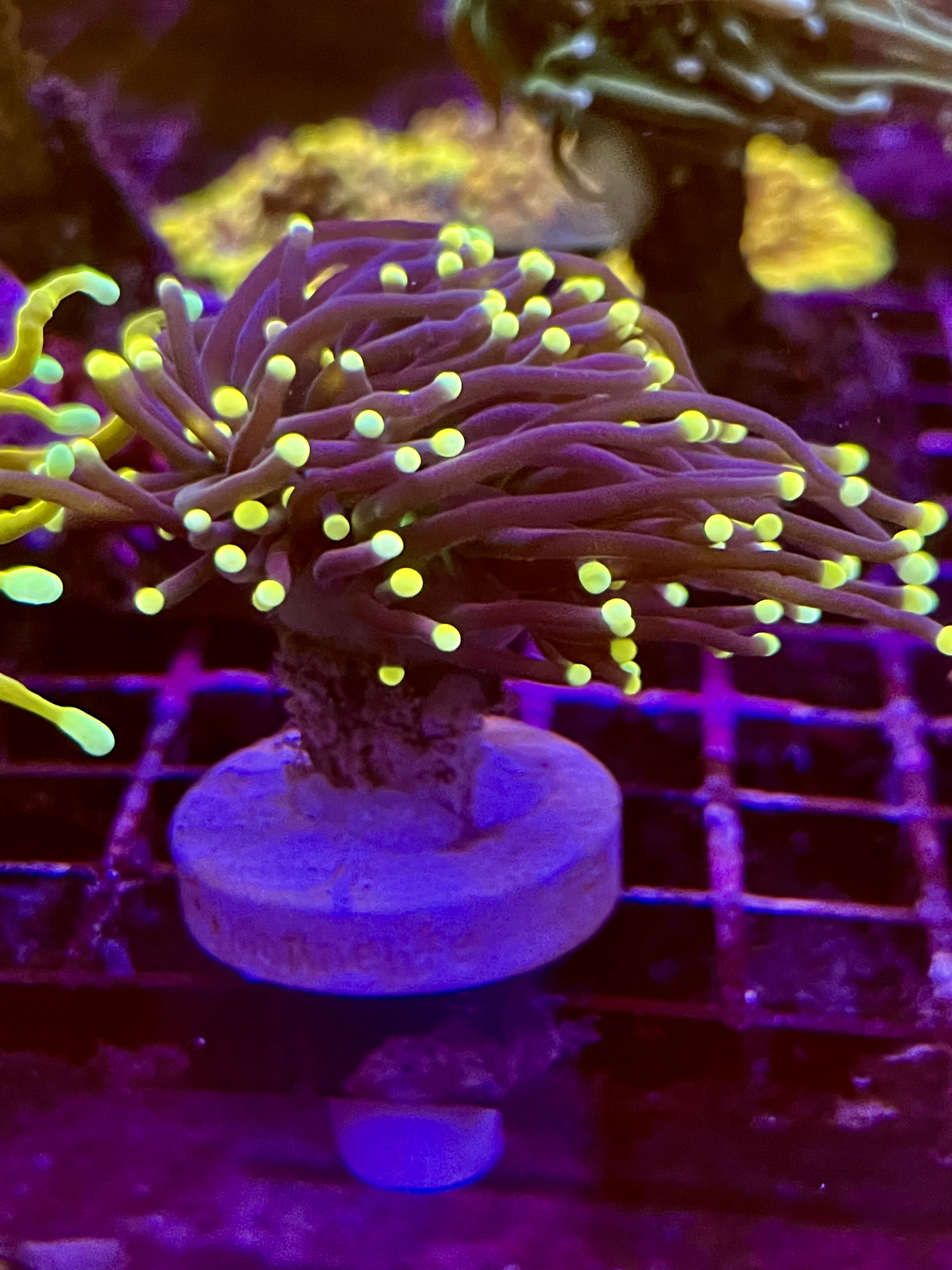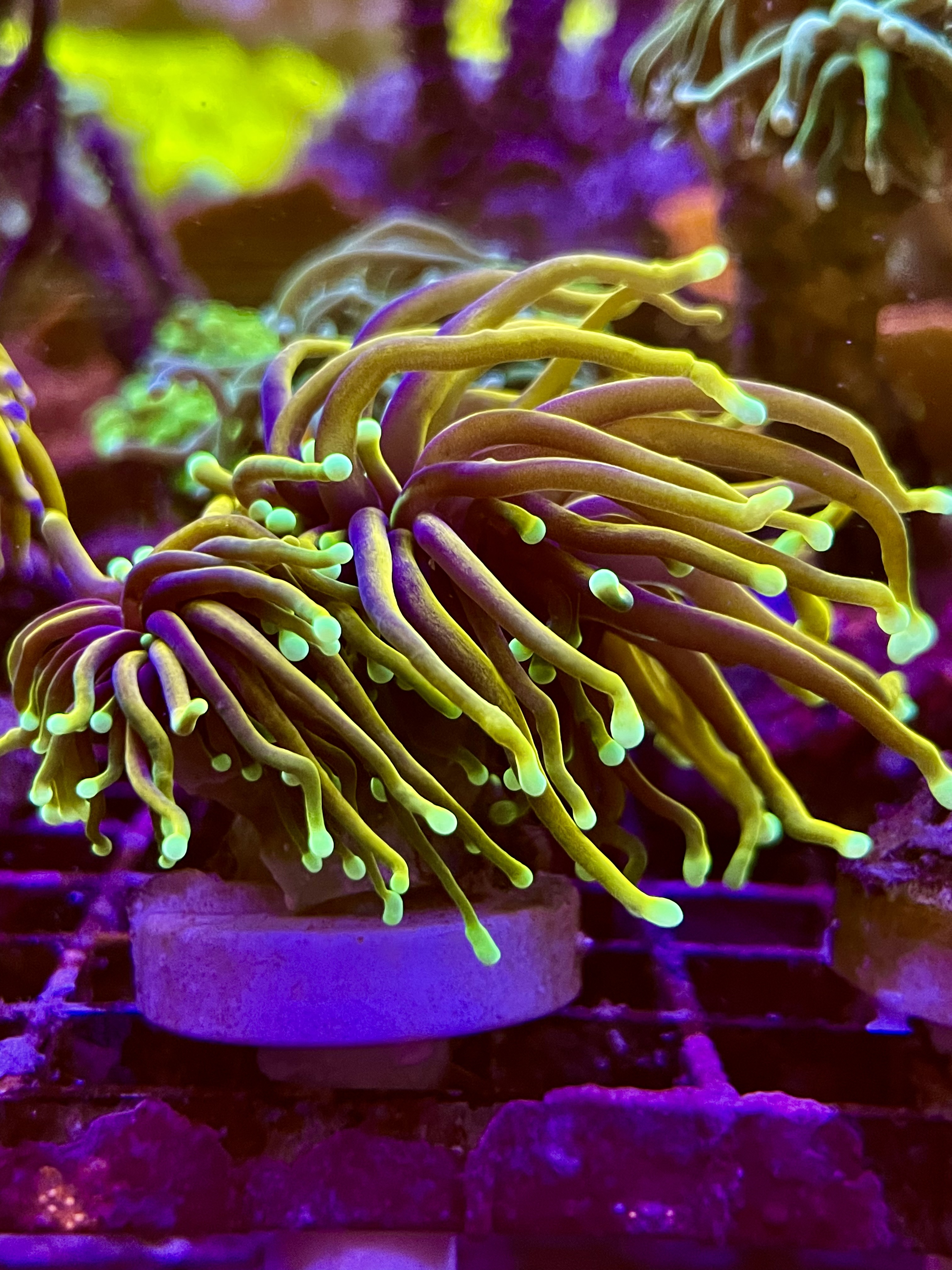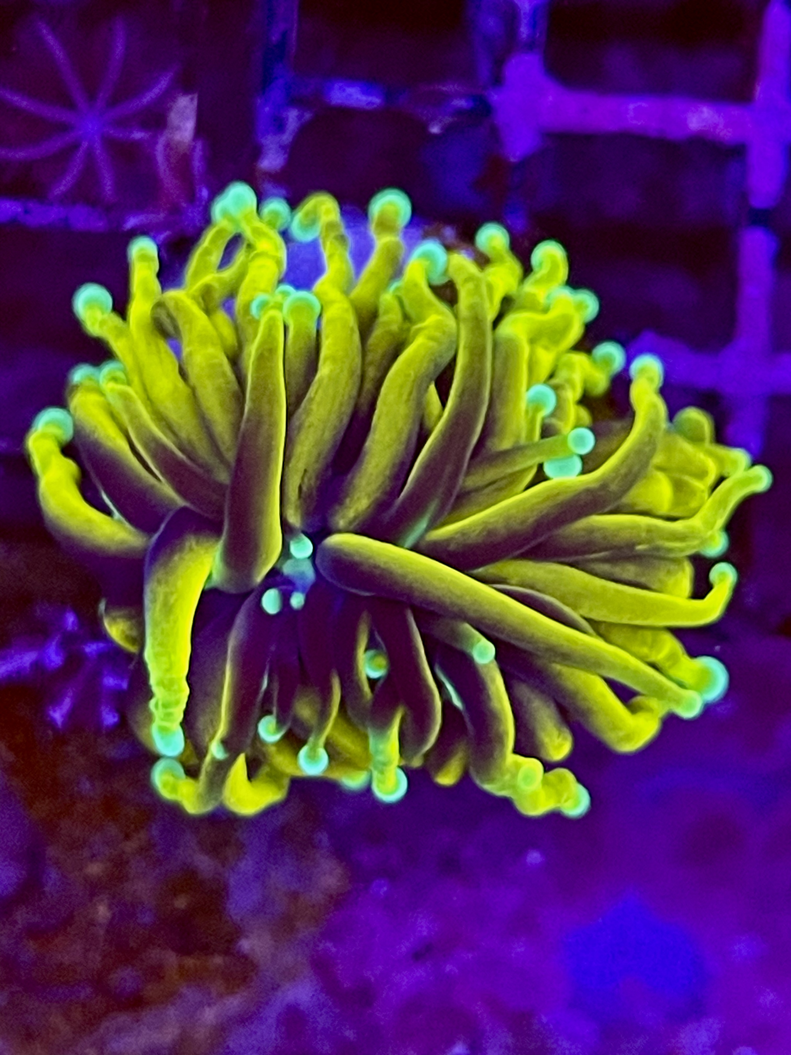 Fungia med skrig grønne polypper. Sælges som sæt, dvs en af hver, til 1000kr