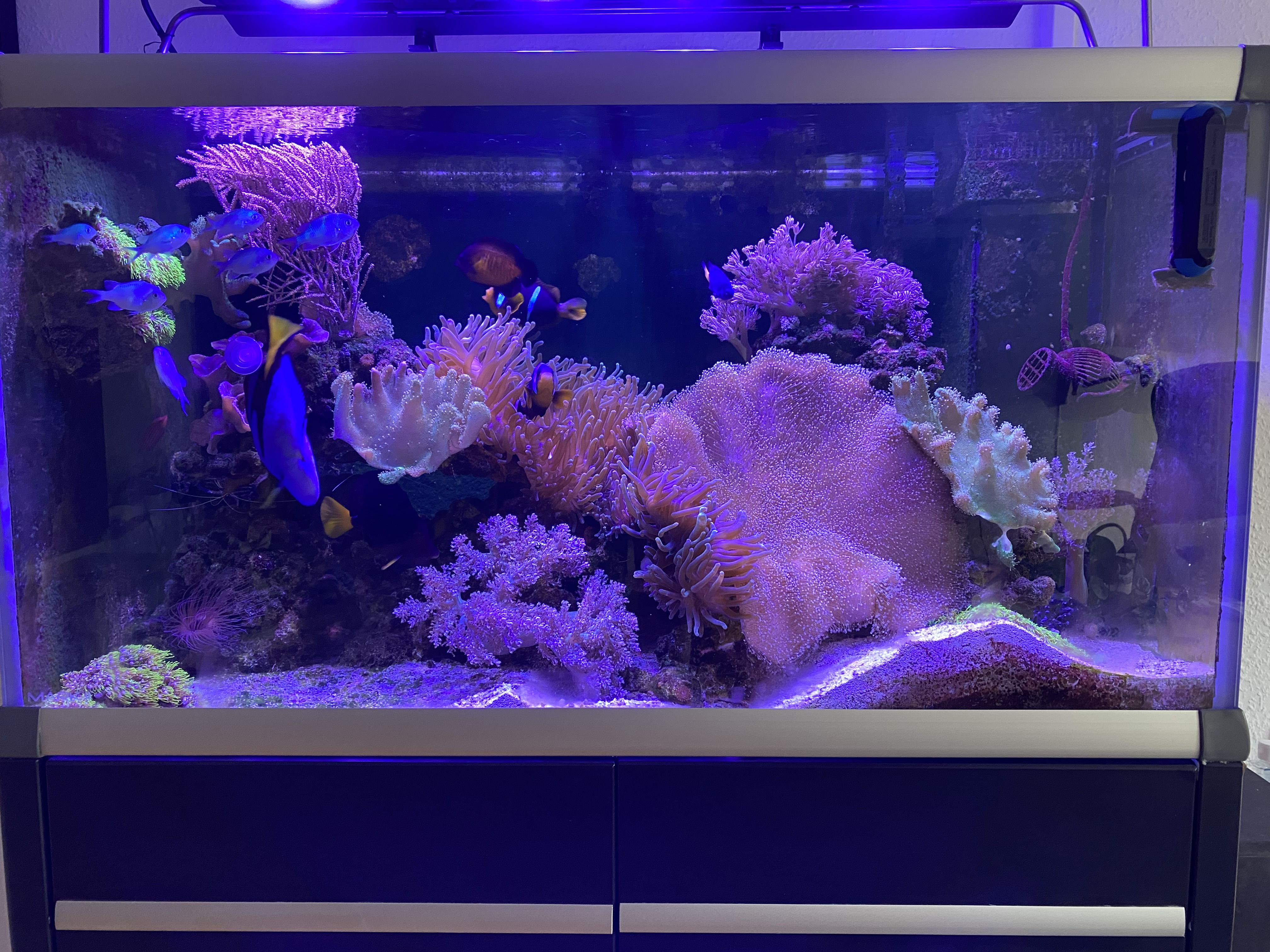 Har fået ryddet ud i BTA’erne, så der kun er en tilbage som Allard klovnfiskene hygger sig i, samt lægge æg ca. 1 gang om ugen.