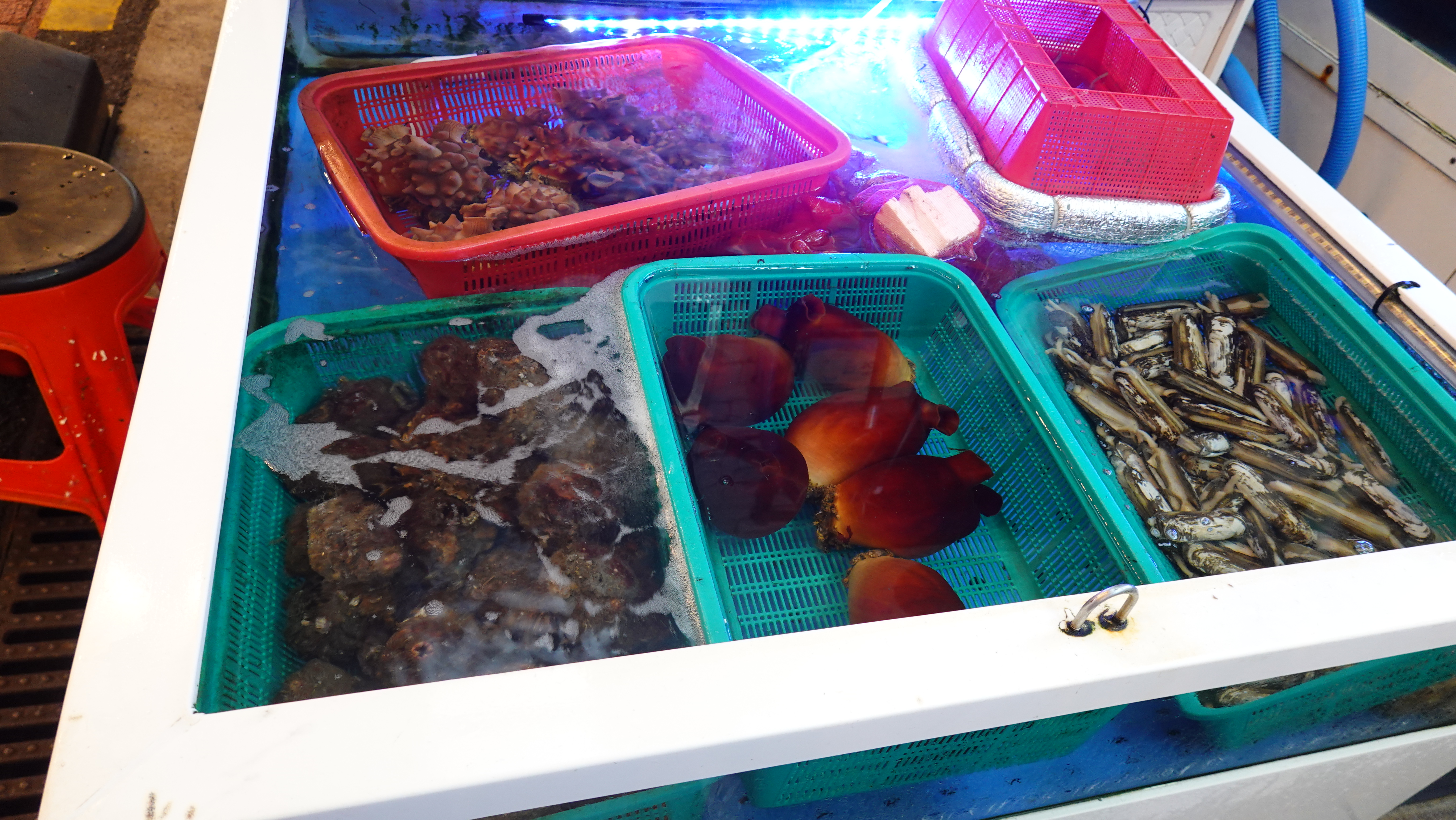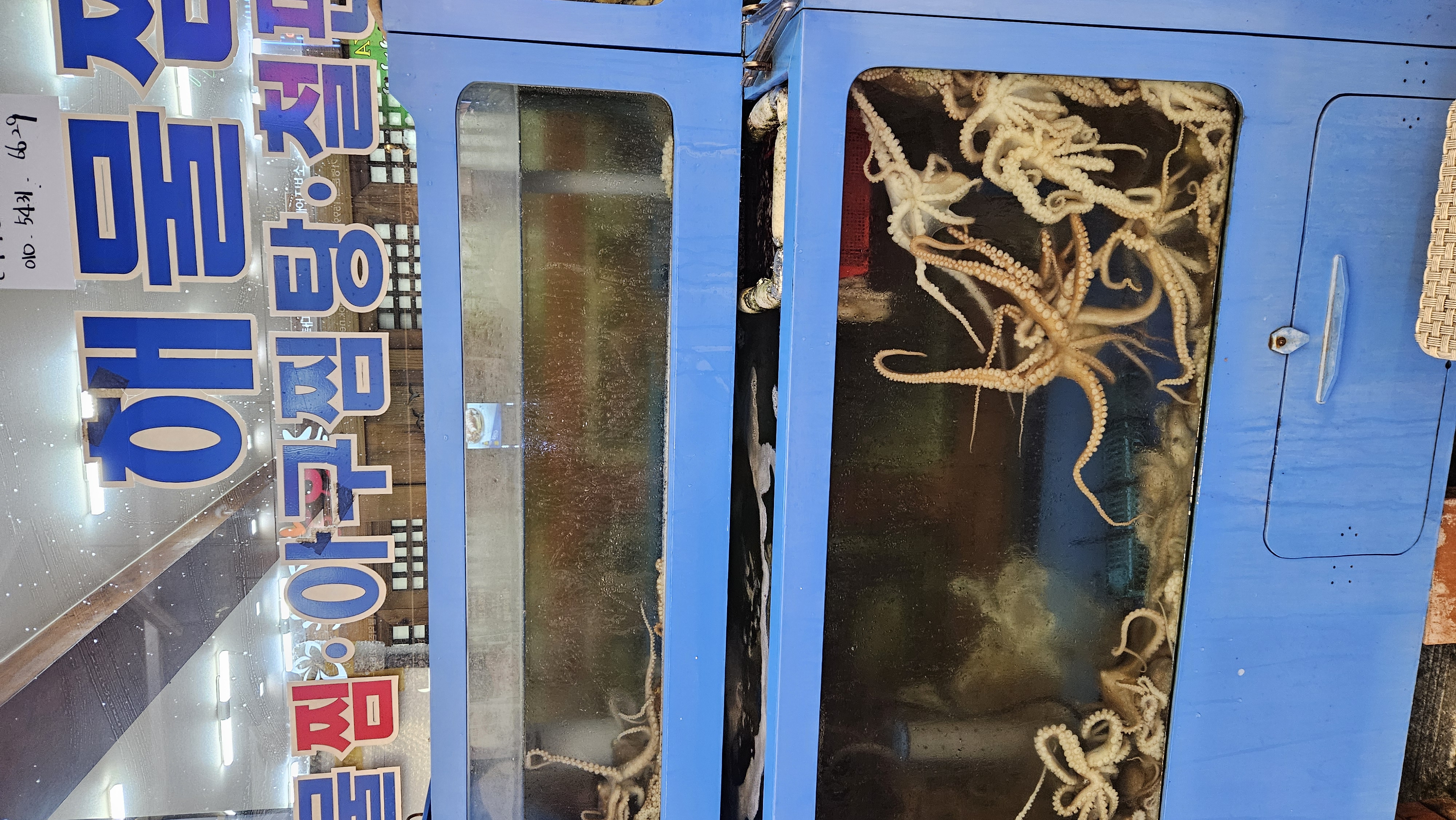 Er lige kommet hjem fra Sydkorea. Her har fiskerestaurenter akvarier udenfor med levende fisk, krebsdyr, snegle, søpunge og blæksprutter. Man peger blot på de dyr man ønsker, så fanger og tilbereder kokken dem