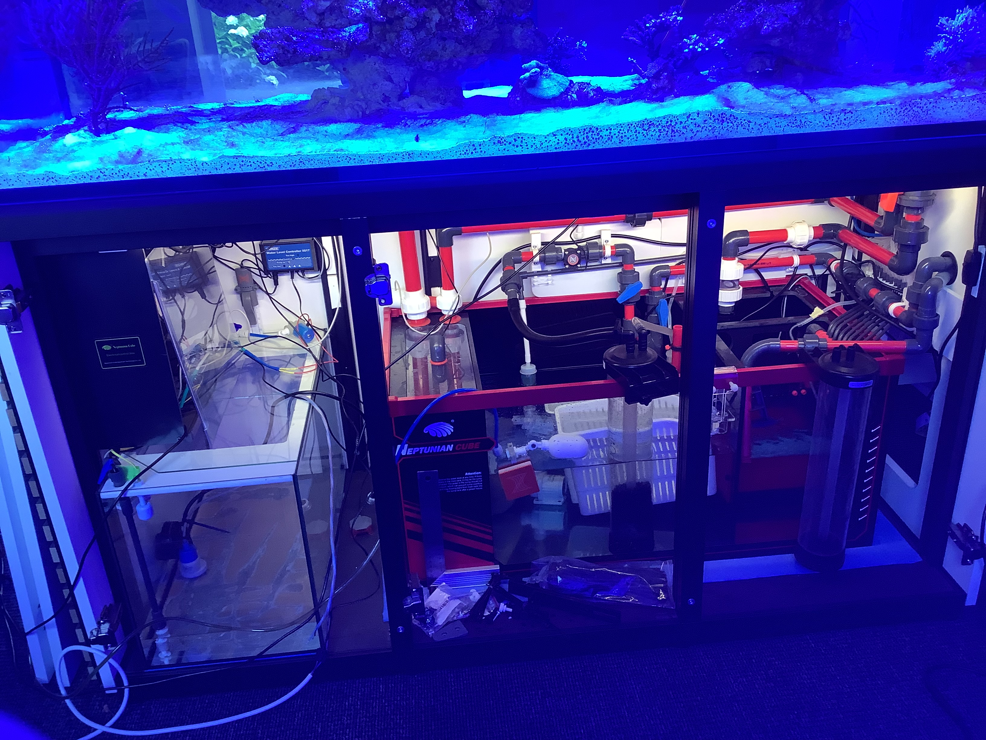 Jeg har valgt at have sumpen først, da det altid er der man skal ind. Teknikskabet passer hos mig med at have min automatiske vandpåfyldning , samt kamera. Det er kun vand dele i skabet, samt APEX computeren. Alt andet teknik er i skabende omkring akvariet. Jeg har som sådan ikke haft nye ønsker til design, da det er super kvalitet.