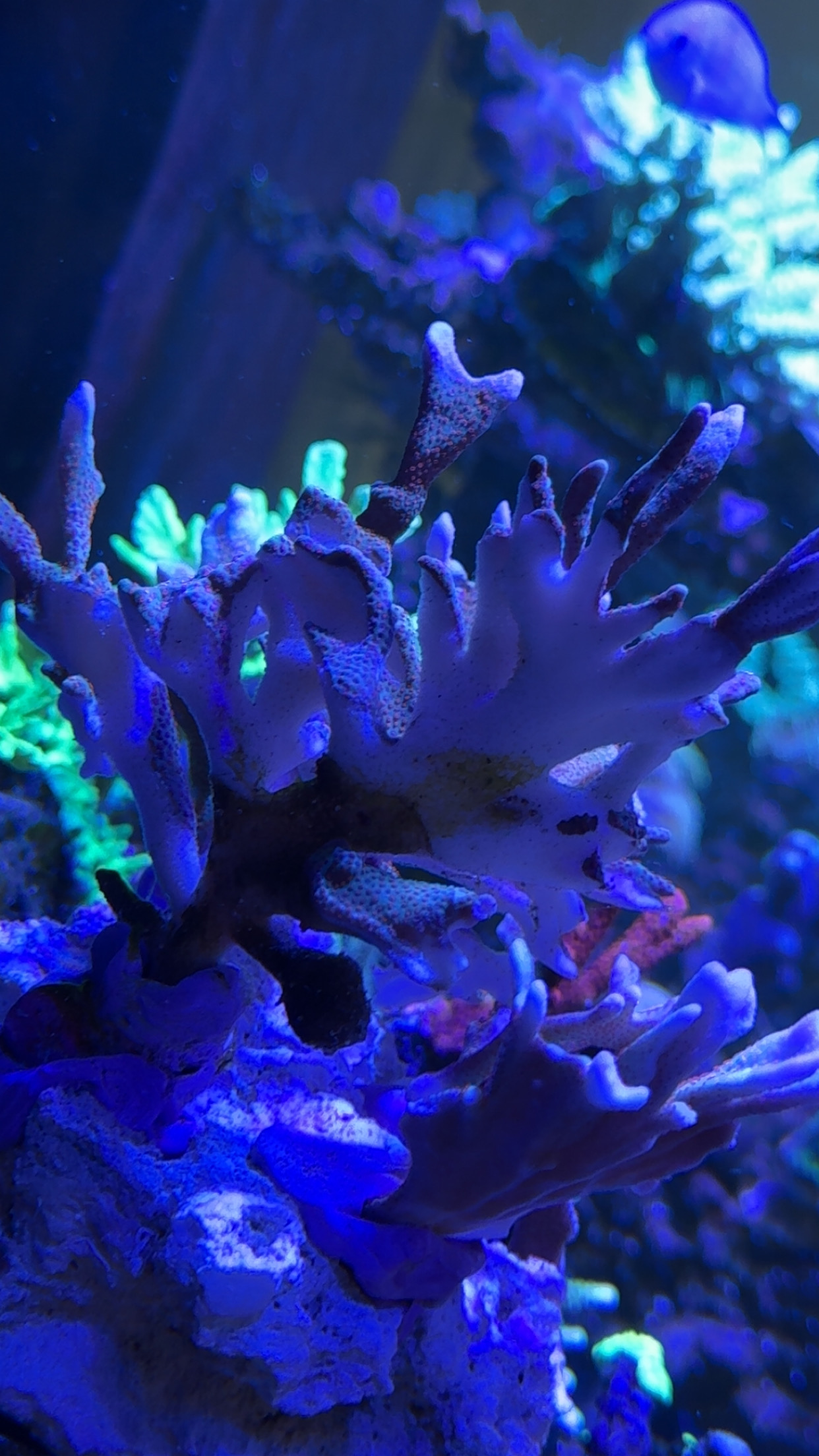 Ja det er kun montipora arterne, men det kun i Venstre side og midten af akvariet indtil videre🙈 mine monti i højre side har intet endnu
