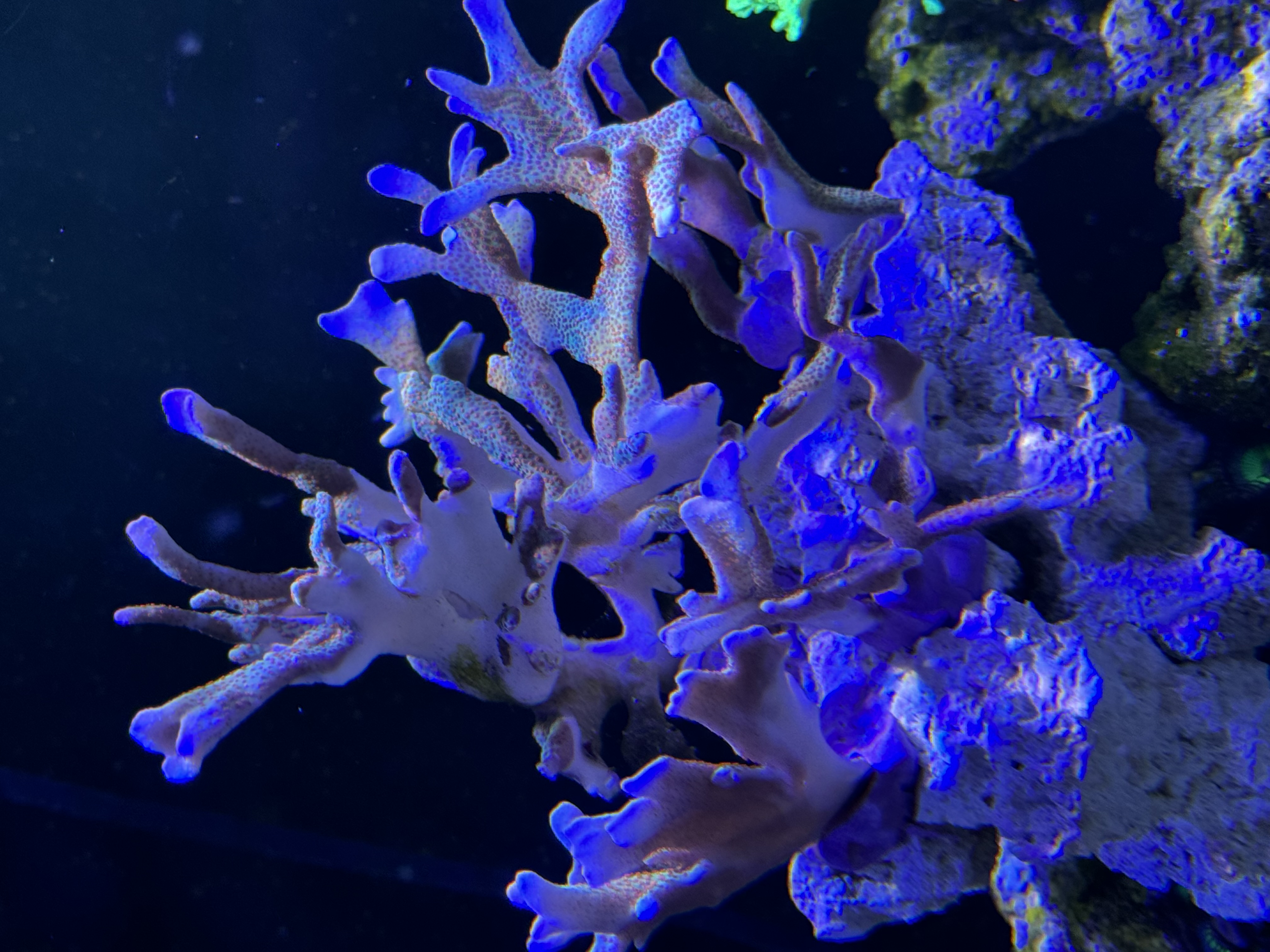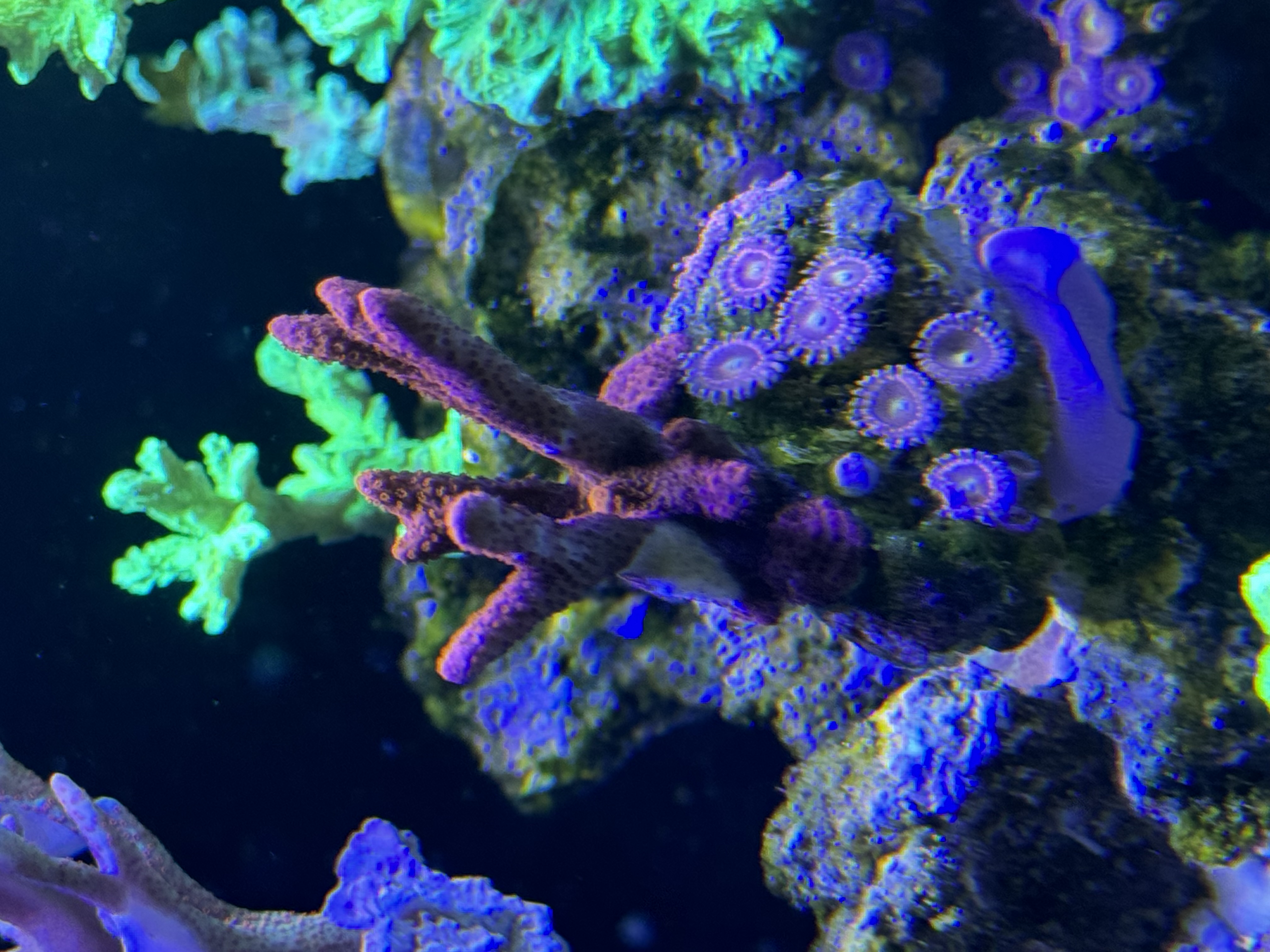 Ja det er kun montipora arterne, men det kun i Venstre side og midten af akvariet indtil videre🙈 mine monti i højre side har intet endnu