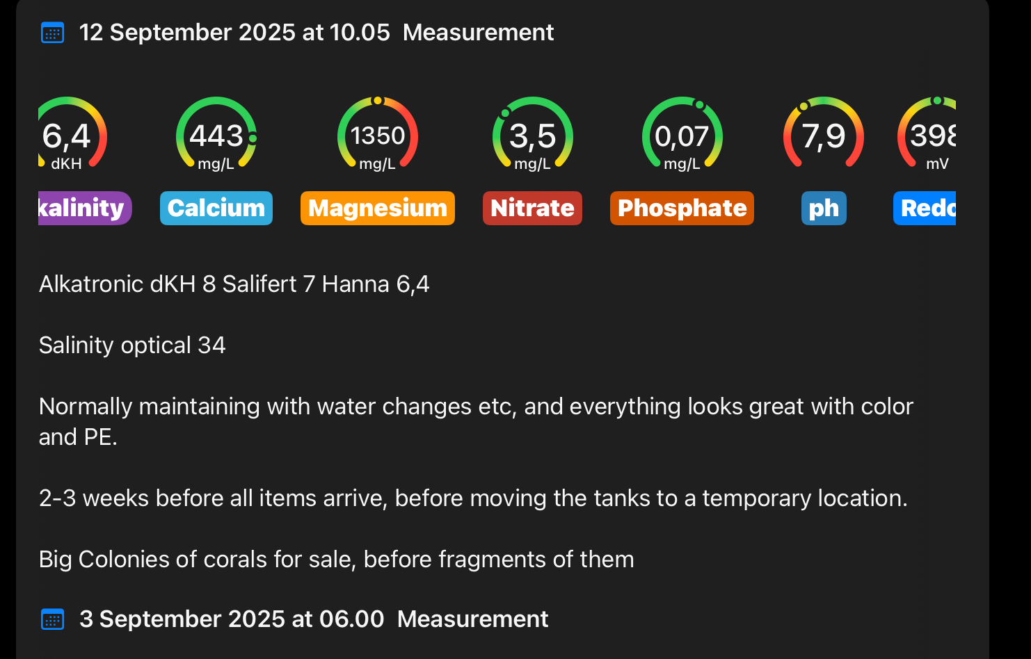 Mit næring er blevet meget lav igen. Jeg fodre som sindssygt , både 2 stk muslinger, krill, 3 forskellige tørfoder , hver dag og værdierne bliver ved med at synke. Ved ikke lige hvad jeg skal gøre, andet end måske begynde at dosere No3 og Po4 igen🤷🏻‍♂️