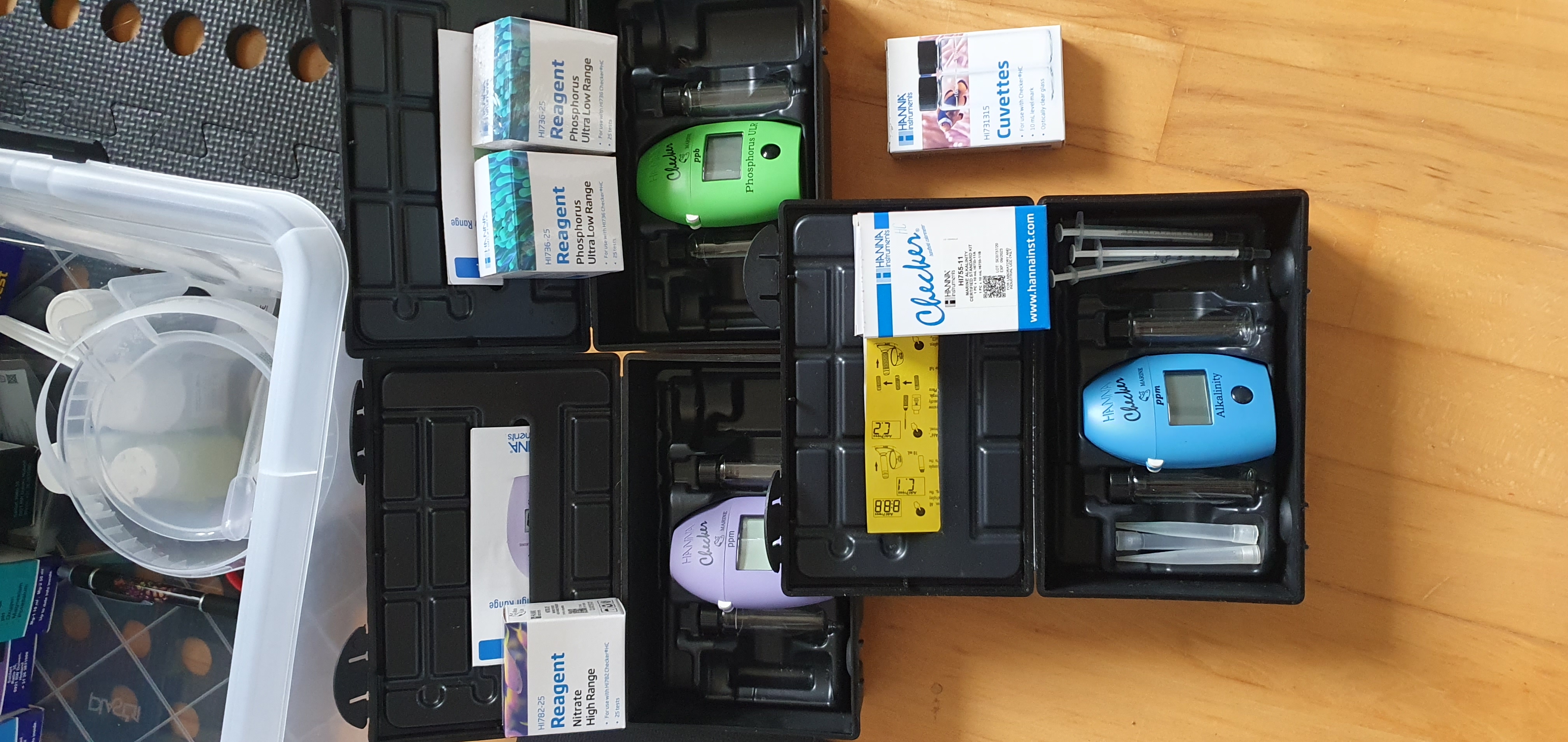 Der medfølger reagens til Nitrat og Phosphorus (+ekstra uåbnet reagens til phosphorus)