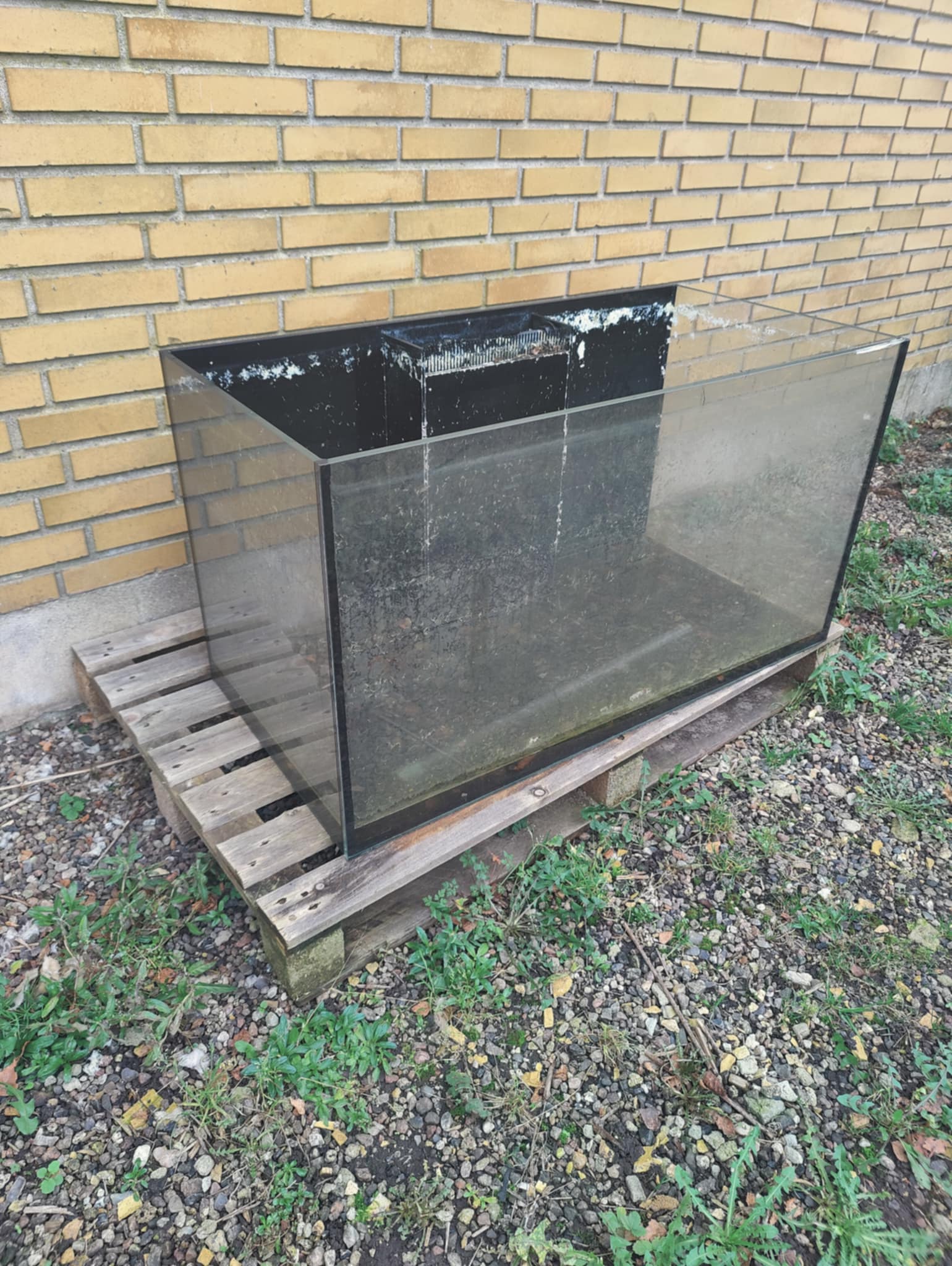 Ville I putte vand i dette akvarie i forhold til den flig der er røget af i toppen af glasset på fronten ude i højre side?