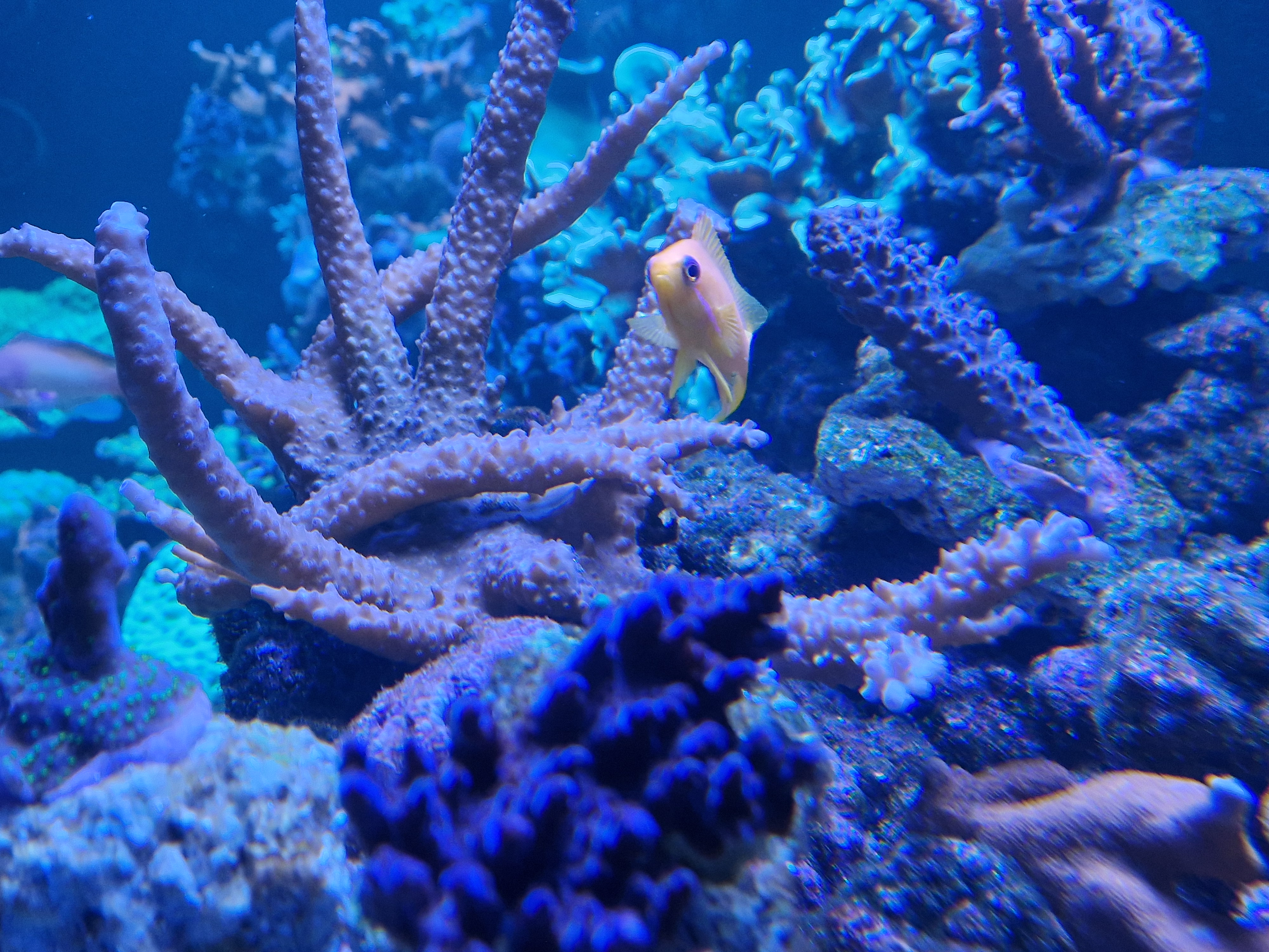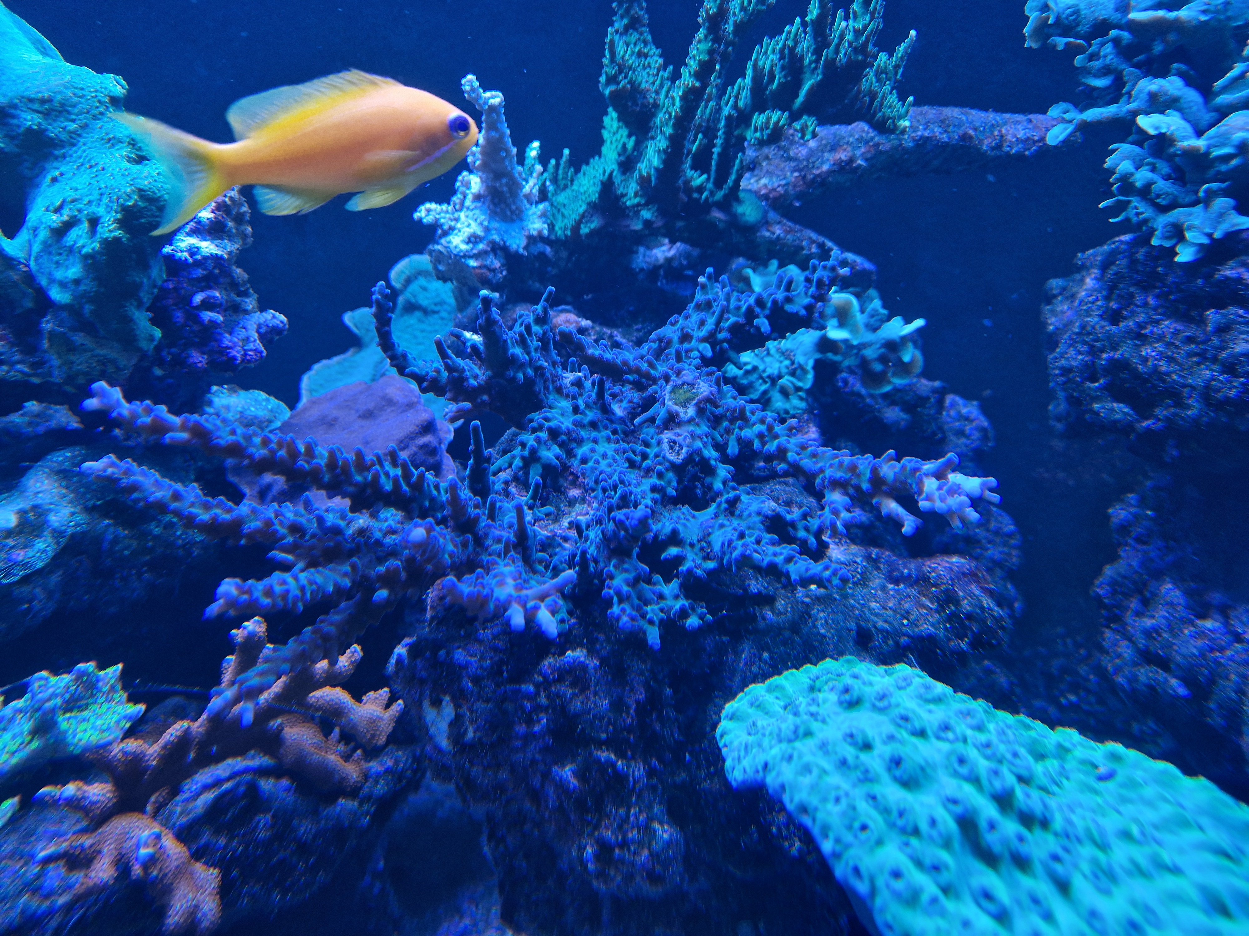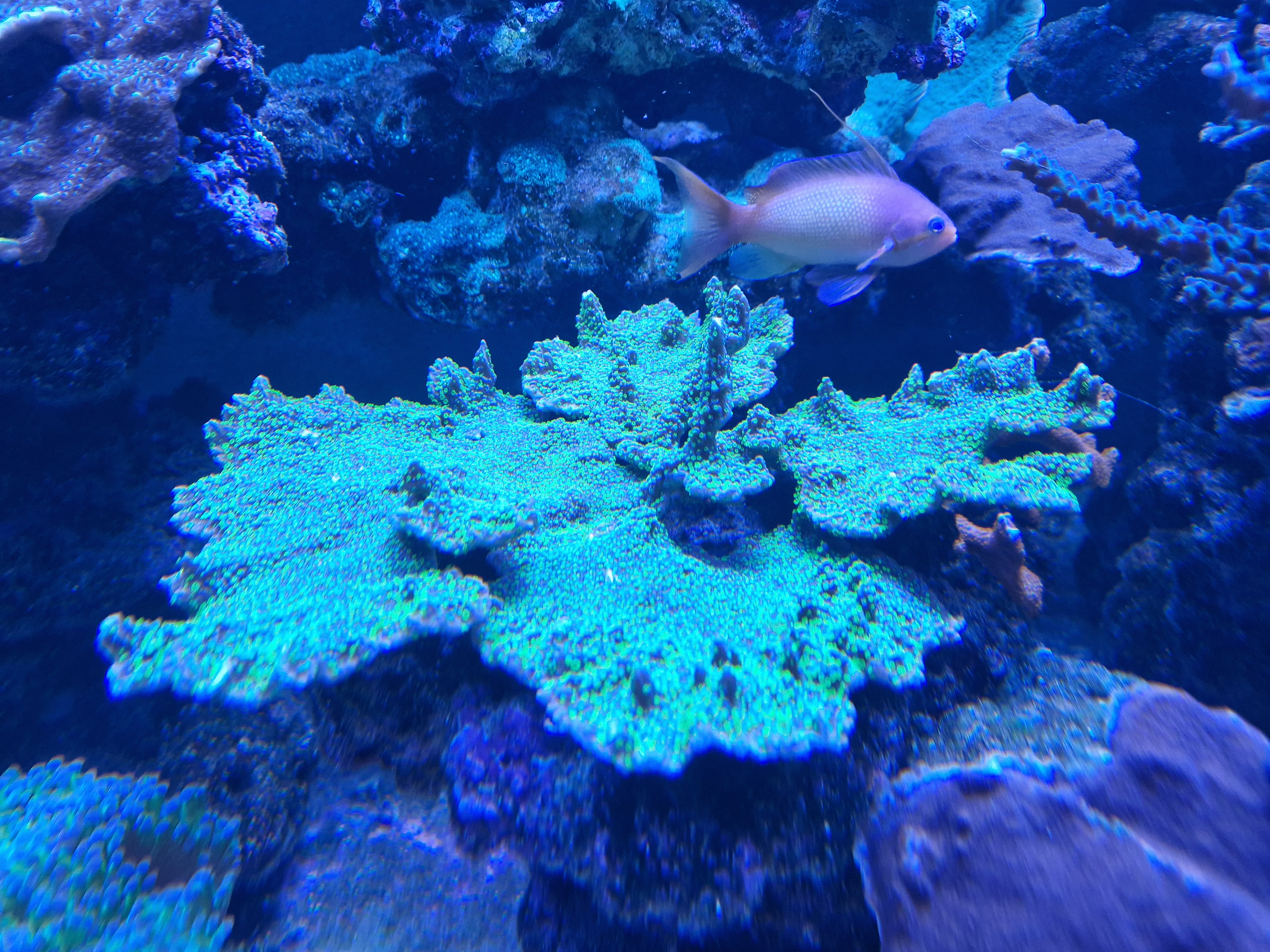 Alle de store flotte koraller jeg fik af Carsten Seniorreefer er ved at falde til og acroporaerne finder deres nye farver ift.i mine værdier.